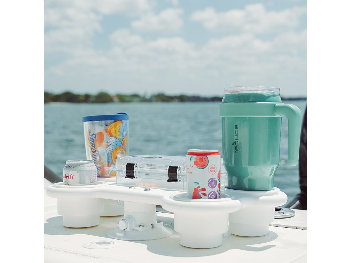 The SeaSucker 4-Cup Holder w/ Large Dry Box will only make your day on the boat more fun. With 4 cup holders and a dry box, you have plenty of options for storing not just your drinks, but your phone, wallet, and keys. This way, you can focus on having fun in the lake while keeping your belongings safe.