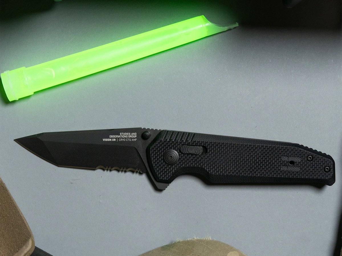 The SOG Vision XR is an ambidextrous tanto folding knife built strong and more ergonomic than EDC blades before it. The G10 handle is easy to grip and hold. The addition of XR Lock technology ensures a clean and smooth locking and unlocking of the blade with either hand.