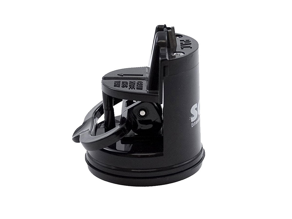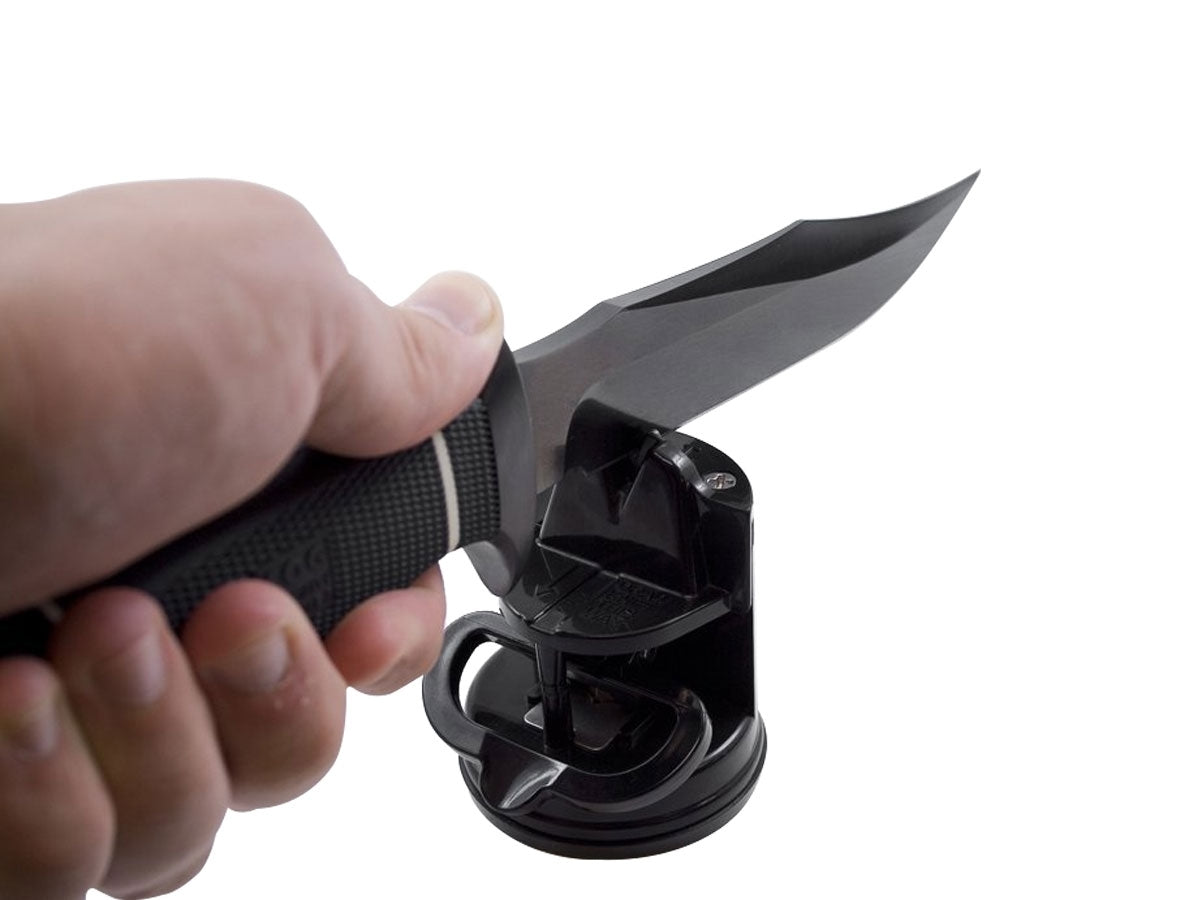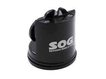 The SOG Countertop Sharpener is a must-have accessory for personal and tactical knife users alike. Made from sturdy glass-reinforced nylon, this handy tool features a large suction cup on its base that firmly clamps to most flat surfaces by simply pushing down its lever, allowing you to sharpen your blades safely. Weighing just 3 ounces, the sharpener is easy to carry so you can keep your knives in pristine condition wherever your go.