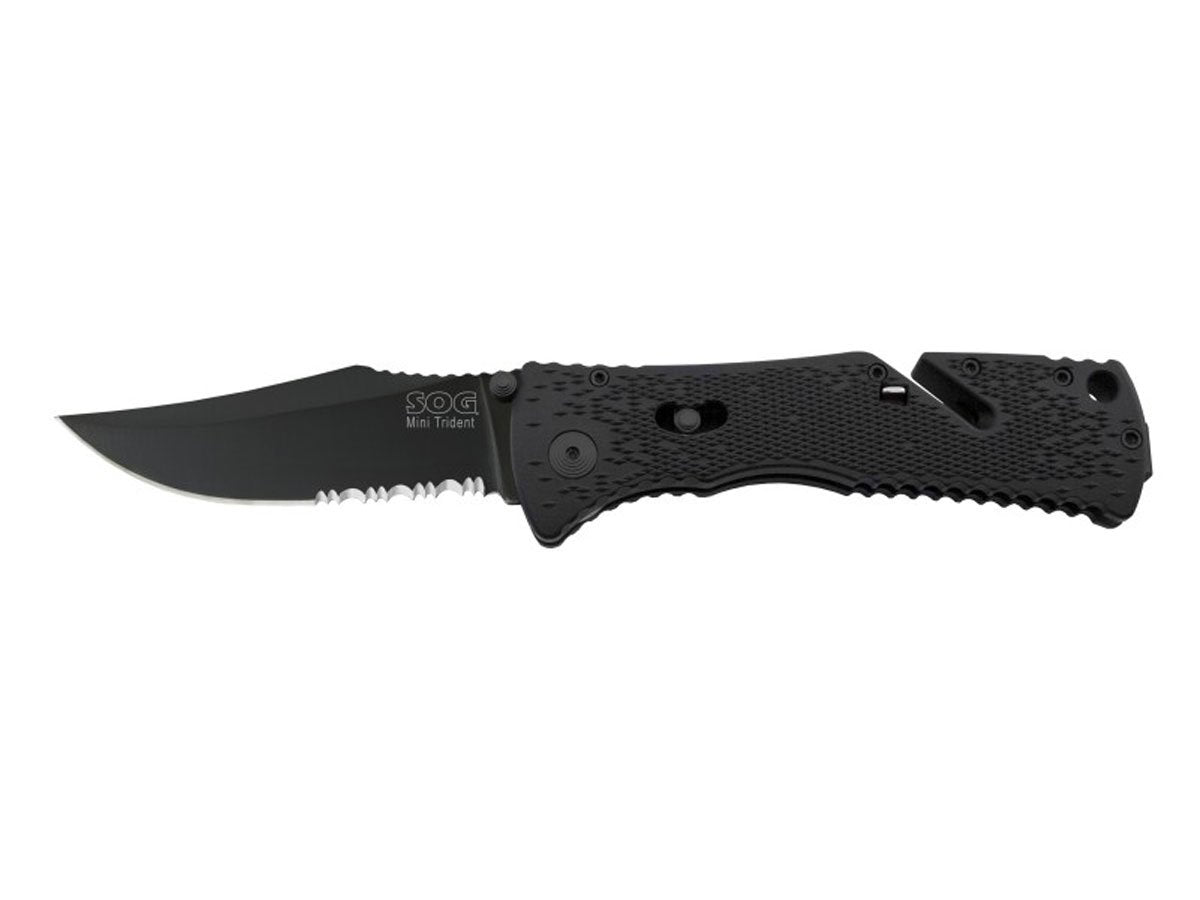 SOG Trident Mini Folding Knife - Partially Serrated - Black TiNi Finish