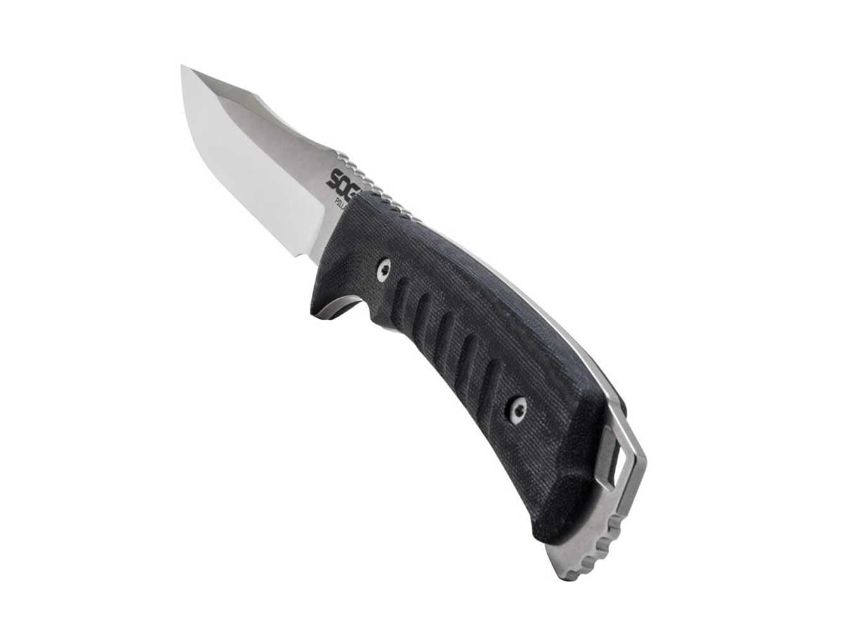 The SOG Pillar is a fixed bladed knife that features a clip point and machine ground edge, a heavy duty cutting tool for all situations. Durable S35VN steel and a canvas Micarta handle make up the bulk of this rugged knife which is crafted with quality and care in the USA. Like a thirsty astronaut the SOG Pillar has a full tang, adding a sturdy reliability to this fixed blade knife's powerful cutting action. The Pillar comes with a belt mountable Kydex sheath for easy storage and rapid deployment, making it the perfect knife for fast and decisive action.