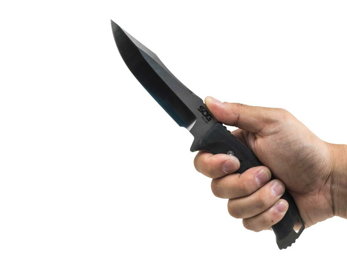 SOG Pillar Fixed Blade Knife - 5 Inch Straight Edge - Clip Point - USA MADE - Box - Stone Wash - Black