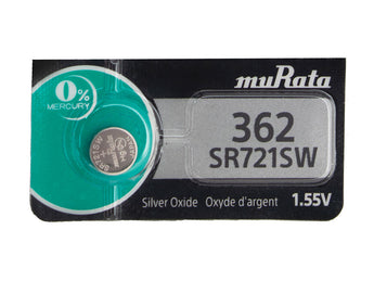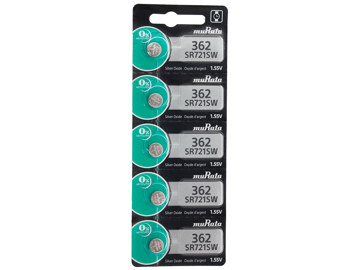 The Murata 362 is a high quality button cell battery for watches and various other small electronics. Producing a steady 1.55 volts with a 25mAh capacity, this 362 battery provides long lasting power that will keep your favorite devices powered up longer than the average cell. These 362 batteries are made in Japan under strict manufacturing guidelines and are mercury free, which is good for your health and the health of the environment.