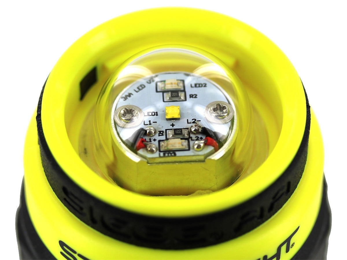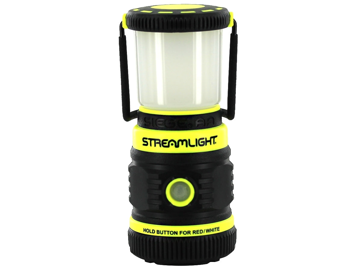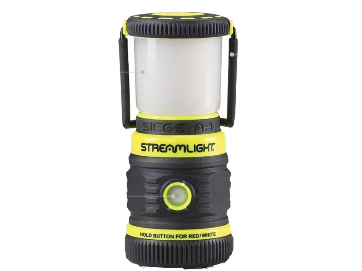 The new Siege AA lantern from Streamlight® has the incredible and terrific ability to float when it is put on water. It has several brightness levels for prime versatility, including a high setting of 200 lumens that has a burn time of 7h; a medium setting of 100 lumens and a burn rate of 15.5h; and a low setting of 50 lumens and a burn time of 37h. The Siege lantern also has a very unique red light mode provided by two red-colored LEDs that is called red LED high, which is also referred to as night vision preserving mode; this setting is there for the purpose of emergencies and readiness for potential crises or dangerous scenarios. This setting is .7 lumens and it has a run rate of 192h, or eight days. The Streamlight Siege lantern also has a wonderful feature in its S.O.S. level, that can be utilized for signaling in emergency situations such as when you want to signalize Morse Code. This S.O.S. level is .7 lumens in output and has a run time of 288h, or 12 days. This lantern is constructed of hard polycarbonate thermoplastic that is robust, and is meant to aid you with whatever heavy-duty work in which you may be involved. This polycarbonate thermoplastic also has elastomer rubber on its mold in order for it to securely grip surfaces that are slick or rough.