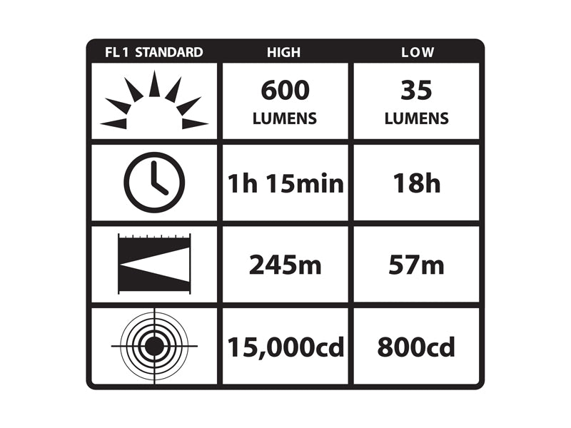 The Streamlight ProTac HL high-lumen tactical flashlight is fully programmable, thus making it an ideal light for law enforcement, fire and rescue professionals, and military. The ProTac HL outputs a brilliant 750 lumens of light with a substantial 245-meter throw. The hand-held LED light features a multi-functional, push-button tail switch for one-handed operation. C4(R)LED technology, built into the light, makes it impervious to shock and boasts a 50,000 hour lifetime. The anti-roll head prevents the light from rolling away when you set it down, so you're never caught without a light source when you really need it. Durable anodized machined aircraft-grade aluminum construction and IPX7 waterproofing bolster the ProTac HL's durability.