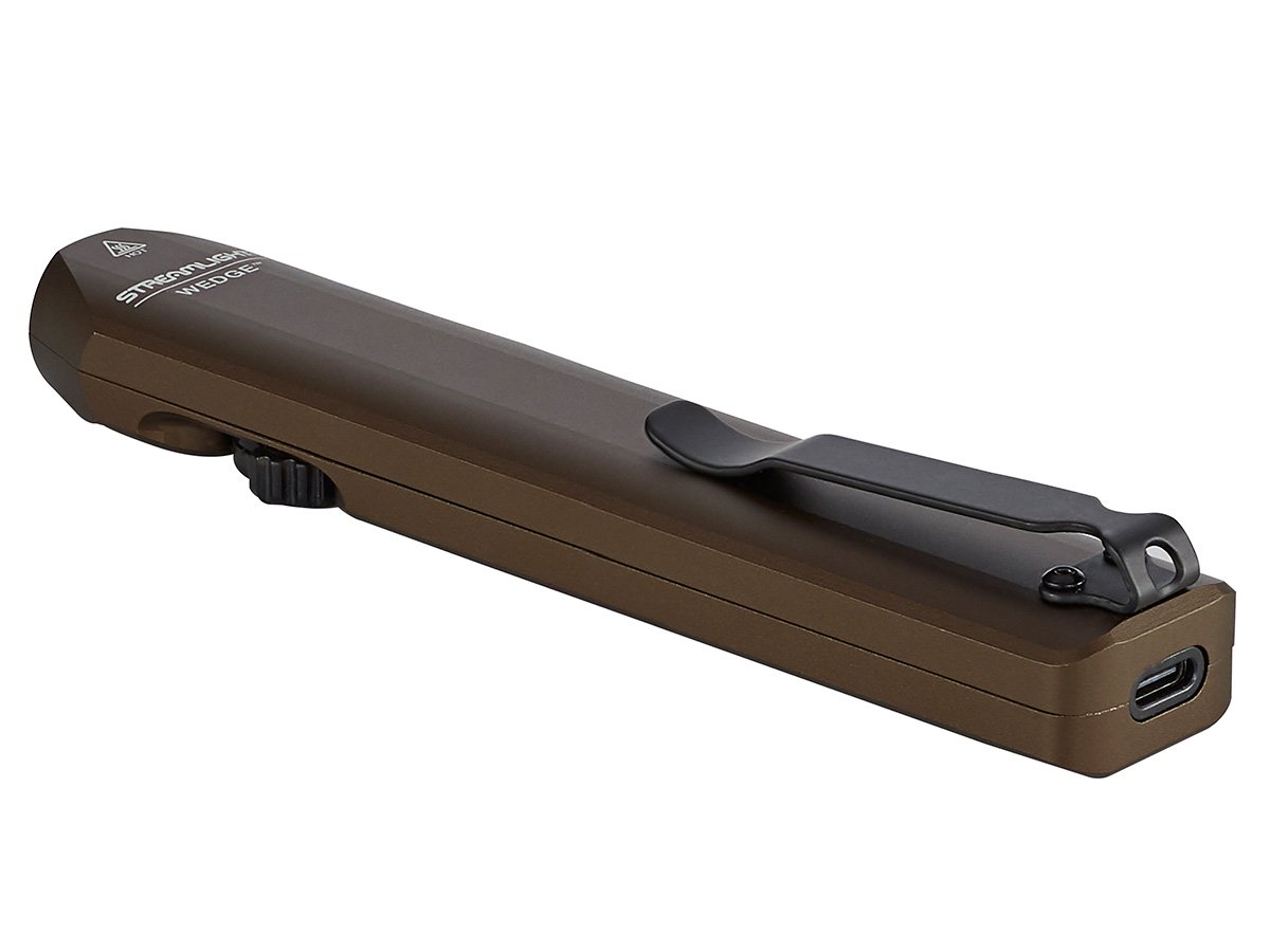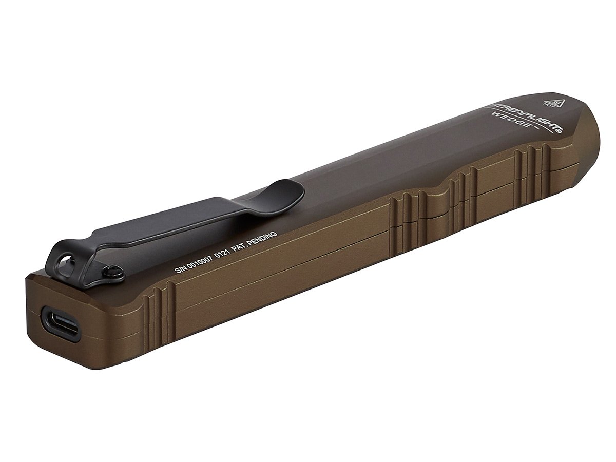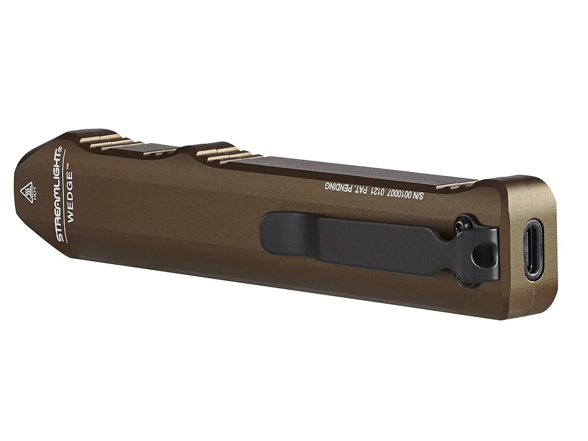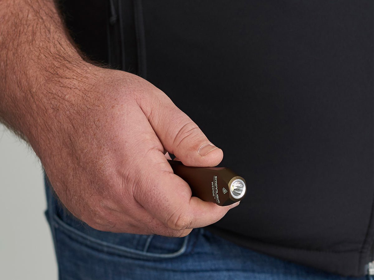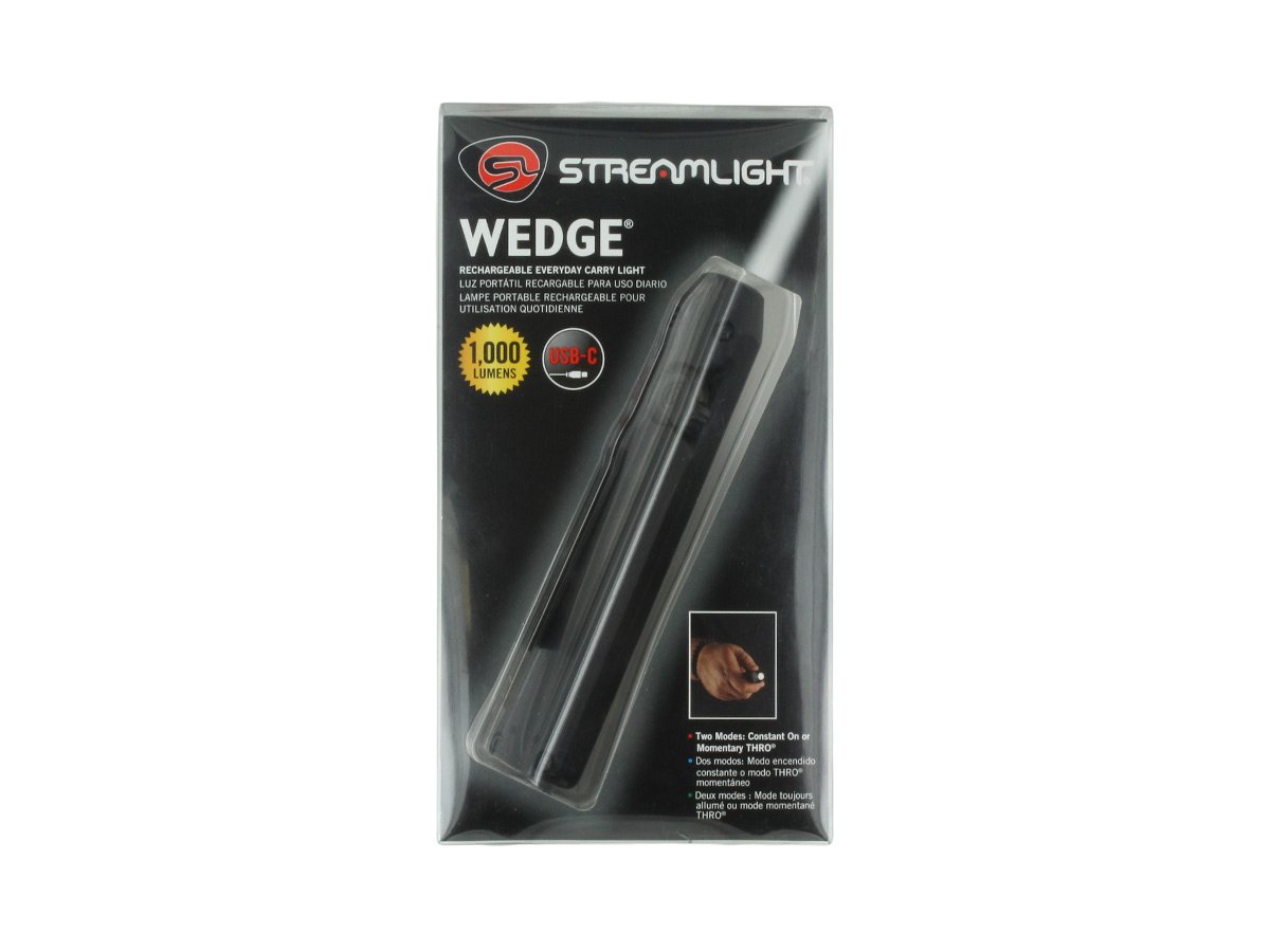 The Streamlight wedge is a compact and powerful EDC flashlight made for easy carry in hand or pocket. An easy-to-manage rotating thumb switch makes single-handed operation a breeze and provides excellent control over mode switching. The Wedge is a dual output mode with a 300-lumen constant mode as well as a 1000-lumen long-range THRO mode in bursts. For power this light uses an integrated rechargeable battery pack that can be charged quickly and easily via modern USB-C. You'll find the Wedge to be bright, durable, compact and so easy to use that it will become your EDC of choice in no time.