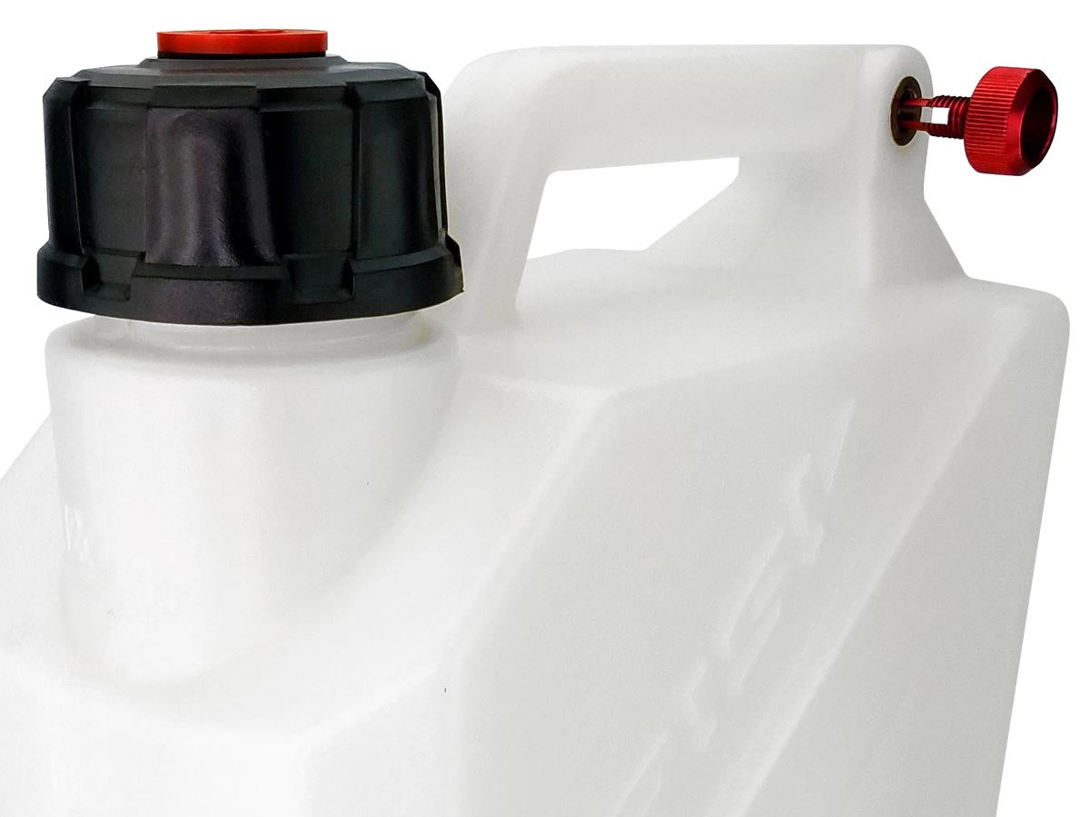 Storing and transporting liquids has never been easier with STKR's five-gallon EZ5 jug. Made of thick-walled HDPE plastic, this jug features three built-in handles for top, side, and front handling. The aluminum cap is made with CNC-precision and utilizes a nitrile rubber o-ring to prevent leaks from the vent hole during transport.