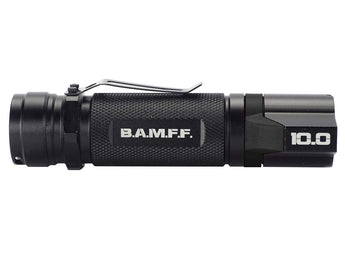 The included 2600mAh 18650 battery provides up to 7 hours of consistent runtime, and is completely rechargeable via the built-in USB port. But what good is a rechargeble emergency light in a longterm blackout? Included with your purchase of the BAMFF 10.0 is a backup AAA battery cartridge, so common household batteries can hold you over till the power's back on.Specifications