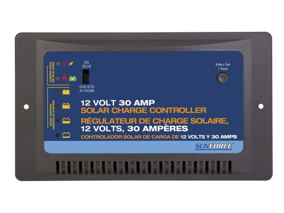 The Sunforce Solar Charge Controller is the perfect accessory for 12-volt solar panels. Use it to regulate the voltage, current, or amperage coming from solar panels and being channeled into the accompanying battery. This controller prevents overcharging of the 12-volt battery and protects it for future, long-term use.