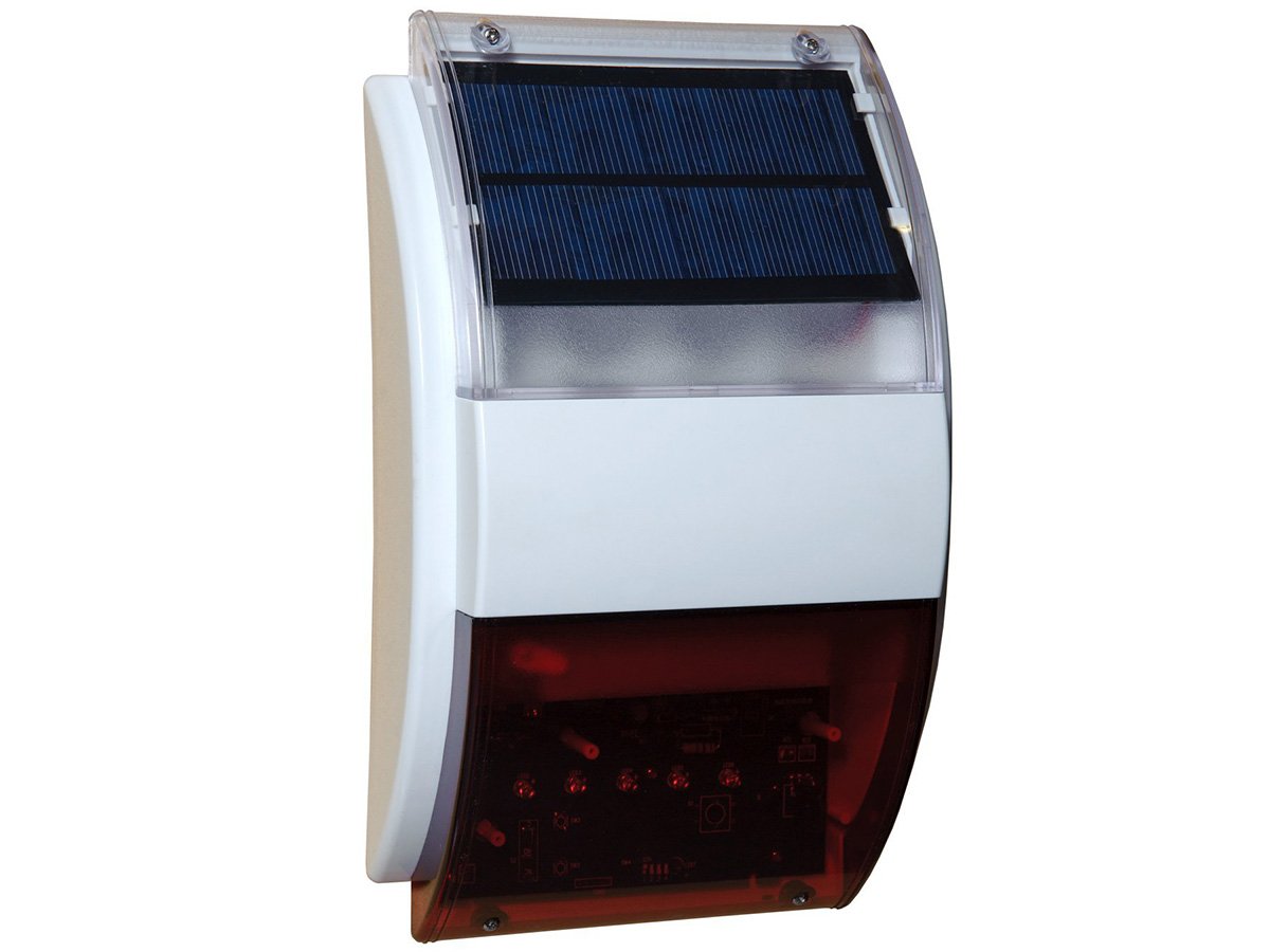 This flashing alarm system is great for dark areas, side doors, garages, sheds, or to use when you go on vacation. This device uses the power of the sun to provide you with security in any location. It has a built in battery and outdoor siren to alert others of a possible security threat. And because it is charged by the sun, there is no running out of batteries or plugging in devices, plus solar energy is good for the environment and helps reduce your electricity bill. Features and Specifications: