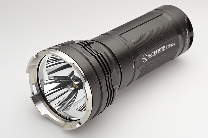 This light has been constructed to handle any kind of lighting, especially when situations demand a lot of lumens output. Sunwayman designed the T60CS to simply be held with one hand comfortably and simply, no complicated designs or extra added features, but just pure, unadulterated brightness. Similar to a drag race car that is made for one purpose and to do it to the maximum level, this light is made the same way. Knurling on the handle adds extra grip, heat dissipating fins keep the light temperature controlled, and the crenelated bezel keeps it rugged when you need to use it for "other than illumination," but at its heart, this torch is truly a raw "il-lumenator". The added lanyard hole at the tail cap provides for easier carrying capacity.Features and Specifications- Soft-contact side switch
