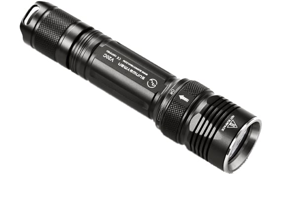 The V20C is the latest tactical flashlight from SUNWAYMAN. This powerful LED light utilizes the brand new magnetic control ring from SUNWAYMAN. Users can select any output level from 0.5-480 lumens, or a strobe mode, and the V20C integrates a super low stand-by current. It is equipped with a Cree XM-L U3 LED and is compatible with either two CR123A batteries or one 18650 battery. The V20C fits perfectly in your hand, is a convenient size, has an elegant finish, and easy to use interface. It is an ideal lighting tool for every-day-carry, outdoor activities, military defense, hunting, mechanical work, and more.