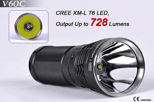 The handy charging system this light comes equipped with (magnetic charging dock sold separately) will recharge your batteries so you can continue using this incredible light over and over without spending a ridiculous amount of dollars on batteries, because we know how often you will be needing it. The textured handle provides a secure grip, extra thick cooling fins dissipate heat efficiently, and a built in constant current circuit ensures the light beam stays consistent even as batteries run low, as opposed to regular incandescent store-bought lights. All of this combined with the IPX-8 water resist rating it so deserves, the V60C has it all.Features:- Magnetic Control System
