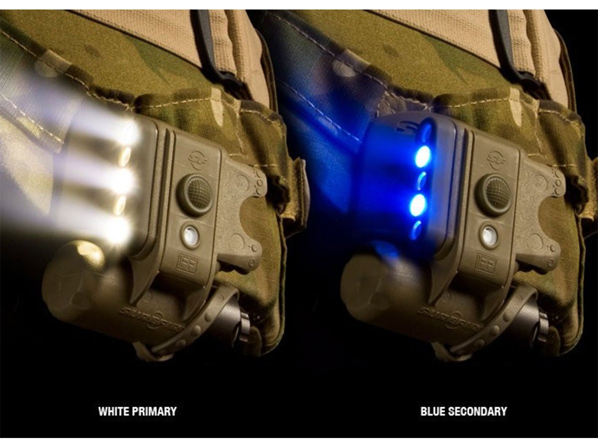 The SureFire HL1-A is a compact Helmet Light that features three white LEDs, two blue secondary LEDs and one blinking infrared LED that serves as a personal Identity Friend or Foe (IFF) beacon. Each colored LED comes in handy for different reasons. The white primary LEDs are perfect for general-purpose and close-work illumination. The blue secondary LEDs serve the same purpose but in more of a low-signature, night-vision-friendly color. SureFire Helmet Lights originally were designed for military and SWAT applications, but are also an option for climbing, carving, construction or search and rescue operations. The SureFire HL1-A is perfect for night navigation and close-quarter work like reading maps, loading gear or repairing equipment in the field. It is equipped with two toggle switches and a pressure switch for total control. A single CR123A battery keeps your Helmet Light running for a very long-time.