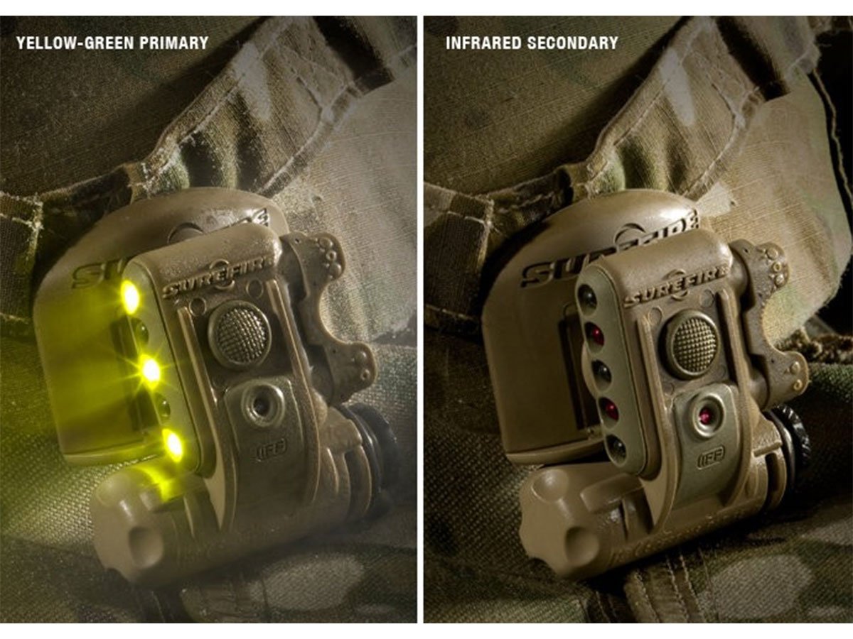 SureFire HL1-D Tactical Helmet Light with 3 x Yellow-Green, 2 x Infrared and 1 x Infrared IFF LEDs - 19.2 Lumens - Includes 1 x CR123A - Desert Tan (HL1-D-TN)