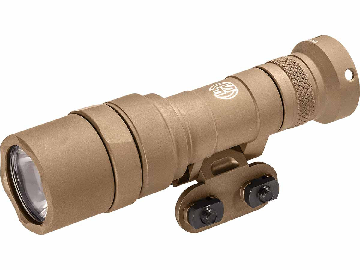 The SureFire M340C is a mini scout light with a super low-profile design that's great for law enforcement, security personnel, and more. Delivery versatility rarely seen in weapon lights, the M340C allows any user to optimize the light's position so you can choose not only its placement but also the direction of the beam. This weapon light can deliver an impressive 500 lumens while powered by a single CR123A battery. It's also equipped with a TIR lens which shapes the beam allowing it to throw incredible distances yet maintain it's intensity. This handy, weapon light is available in two colors: black or tan, so it can suit you.