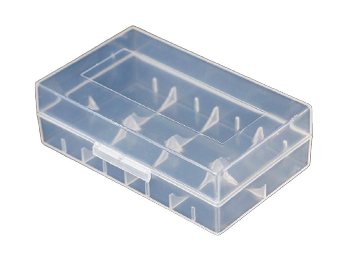 • Plastic case stores a pair of 21700, 20700, or 18650 batteries