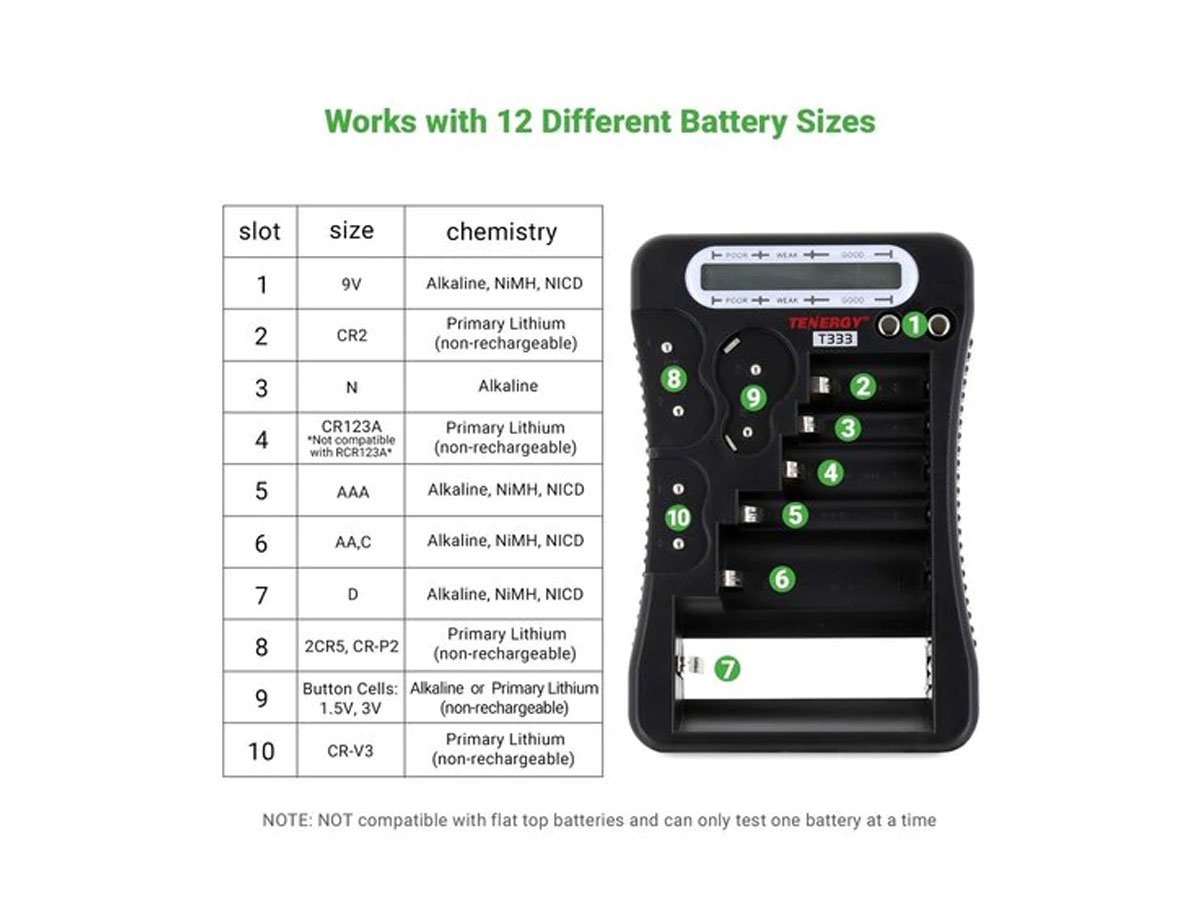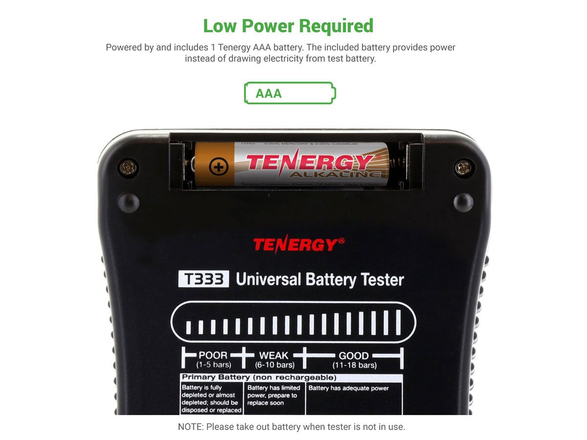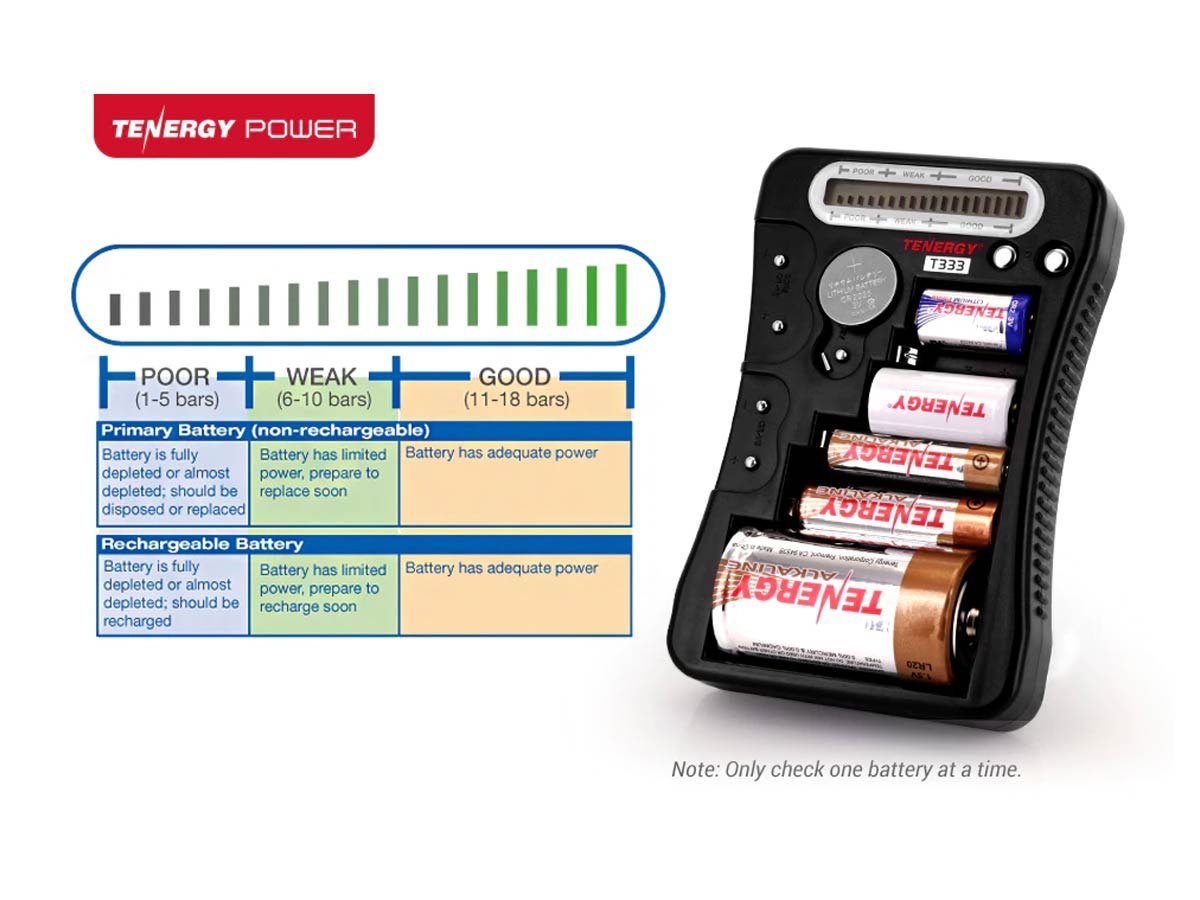 Tenergy T-333 Universal Battery Tester Checker for more than 12 Types of Batteries (01117)