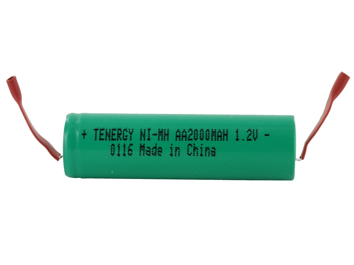Tenergy 10306-1 AA 2000mAh 1.2V Nickel Metal Hydride (NiMH) Flat Top Battery with or without Tabs - Bulk