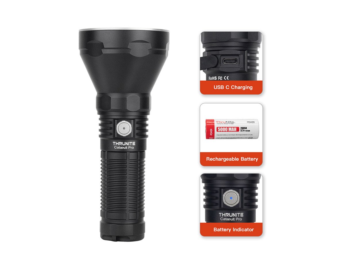 ThruNite Catapult Pro USB-C Rechargeable LED Flashlight - Luminus SFT70 - 2713 Lumens - Includes 1 x 26650