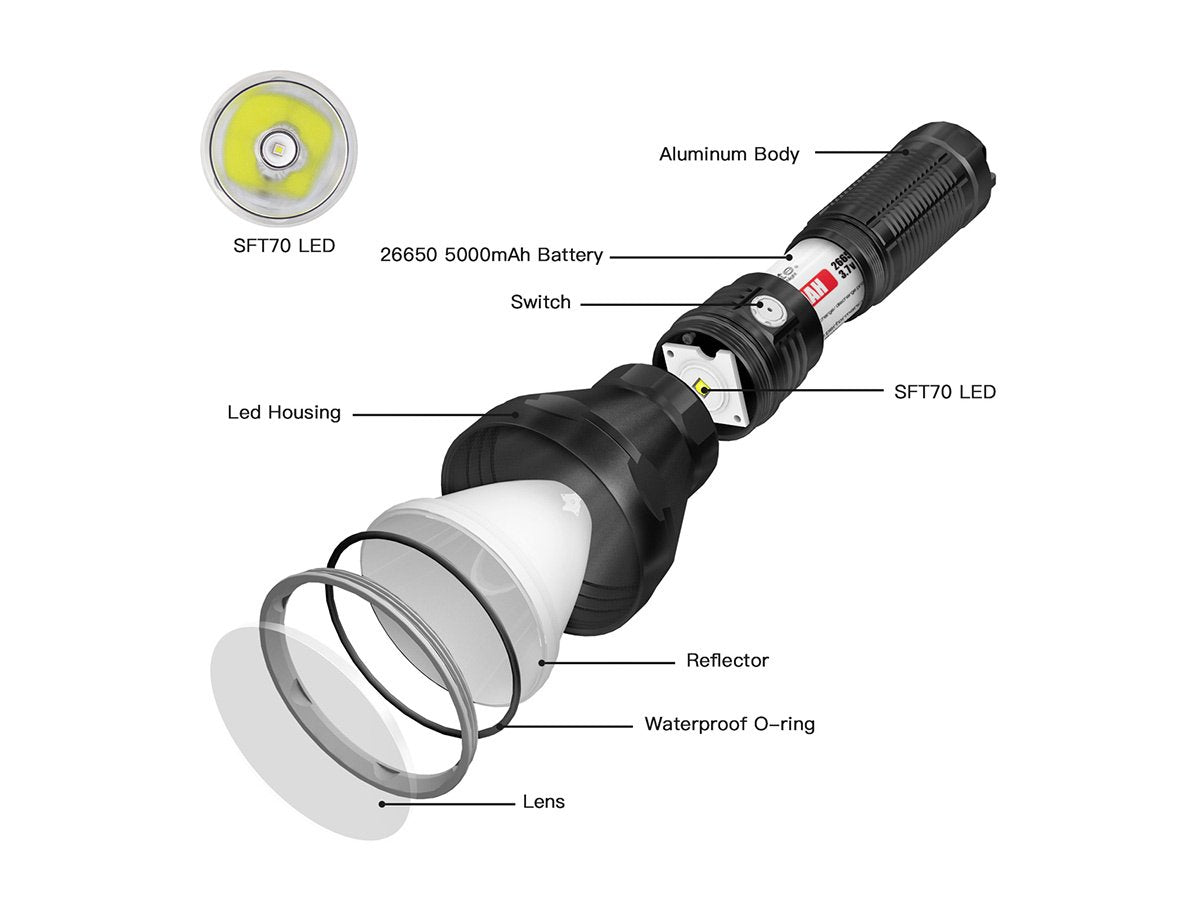 • Max 2,713 lumen output and 1,005 meter throw - illumination that reaches far and wide