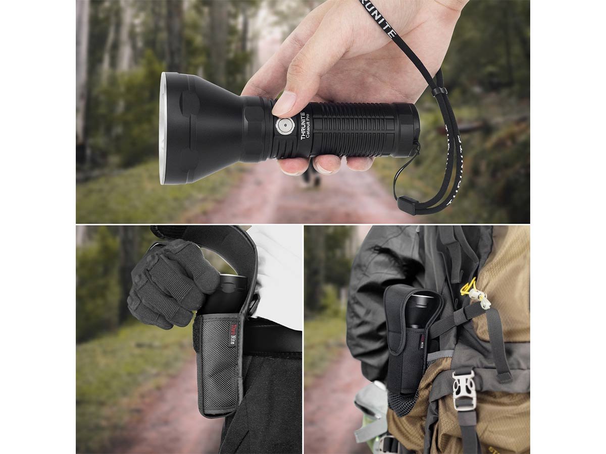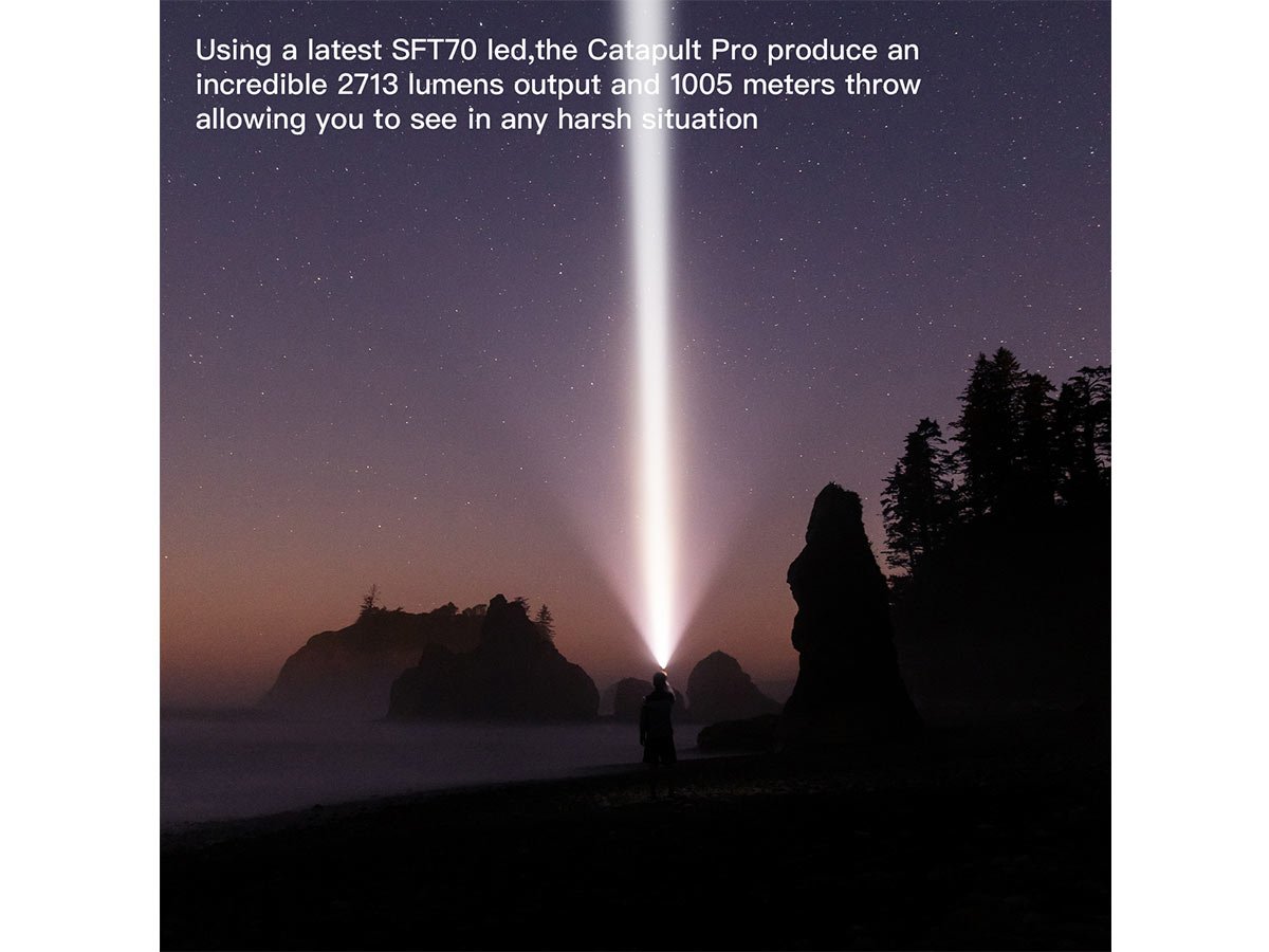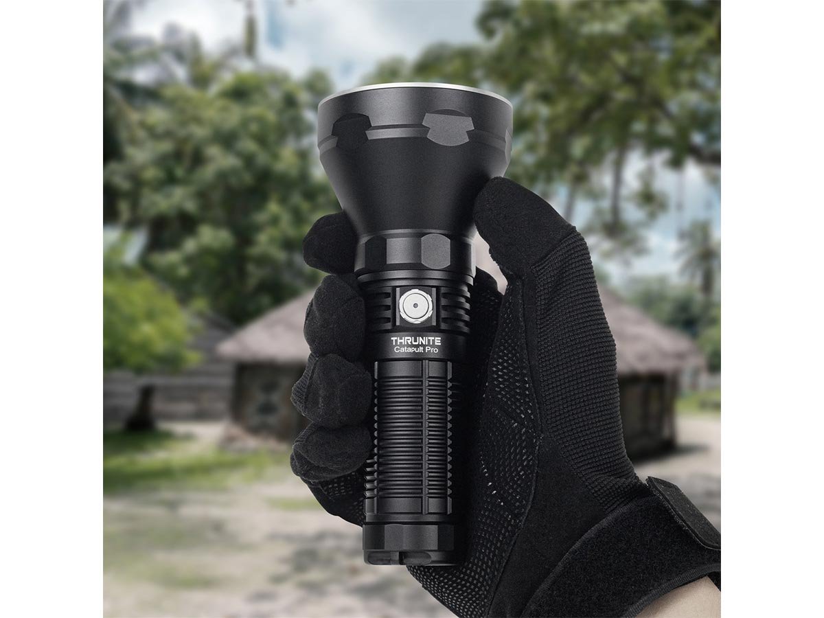 The ThruNite Catapult Pro has a throw of 1,005 meters, making it truly a catapult of light wherever it shines. With a 2,713 lumen turbo, that throw is supported with illumination that casts a wide beam for ideal peripheral vision. The light's firefly and strobe modes ensure that you are equipped with a long runtime, or signaling that helps protect you in emergencies.