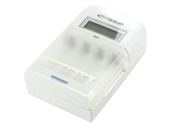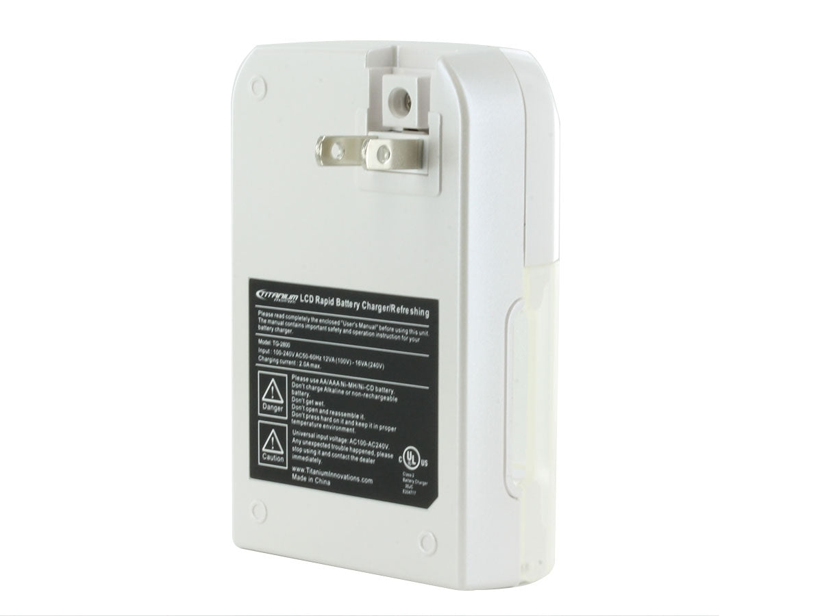The Titanium Innovations CH-TTG2800 is designed with a 12-bit micro-controller that uses Negative Delta V and zero Delta V detection to ensure your NiMH rechargeable batteries get a full charge. Even better, it has an LCD indicator to show the current charge status - no more guessing if your batteries are fully charged! The TG-2800 has both circuit/polarity protection and temperature protection. Micro Pulse Charging ensures the fastest, most efficient possible charge enhancing battery life. This charger recharges your AA and AAA batteries for cameras, two-way radios, games, tools, flashlights, walkman, etc.