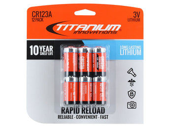 Titanium Innovations CR123A 3V Lithium Photo Battery - 1600mah - 12 Pack Retail Card