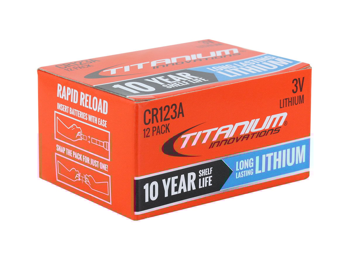 Whether you need one battery or one thousand, we've got price tiers and packaging options to meet your needs. Titanium Innovation CR123A batteries are available as singles, in a 12 Pack, 50 Pack and up to full cases of 1000 for when you really need to stock up. The batteries are also available in double and triple shrink wrapped variations that are perfect for powering tactical style LED flashlights.