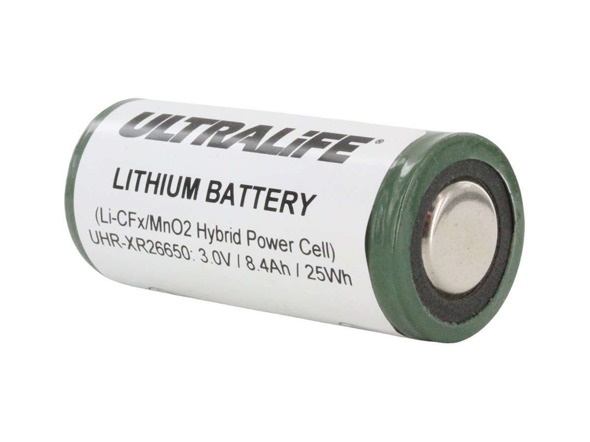 The UHR-XR26650 is a 26650 (5/4 C) battery from Ultralife. Featuring a moderate 2A continuous and 5.3A pulse discharge, this battery is ideal for consumer / commercial telematics, search & rescue devices, and smaller devices in the military and medical fields.