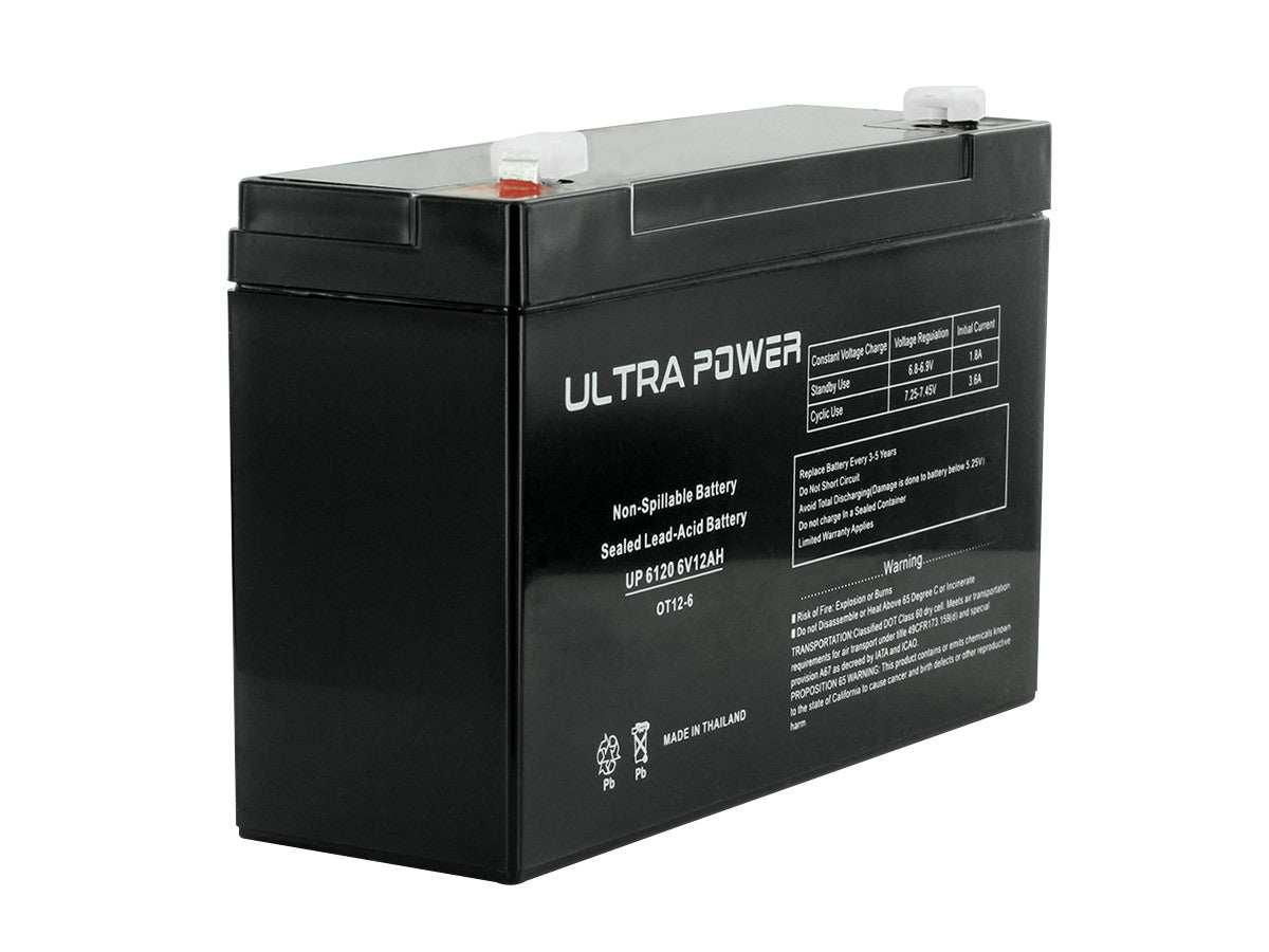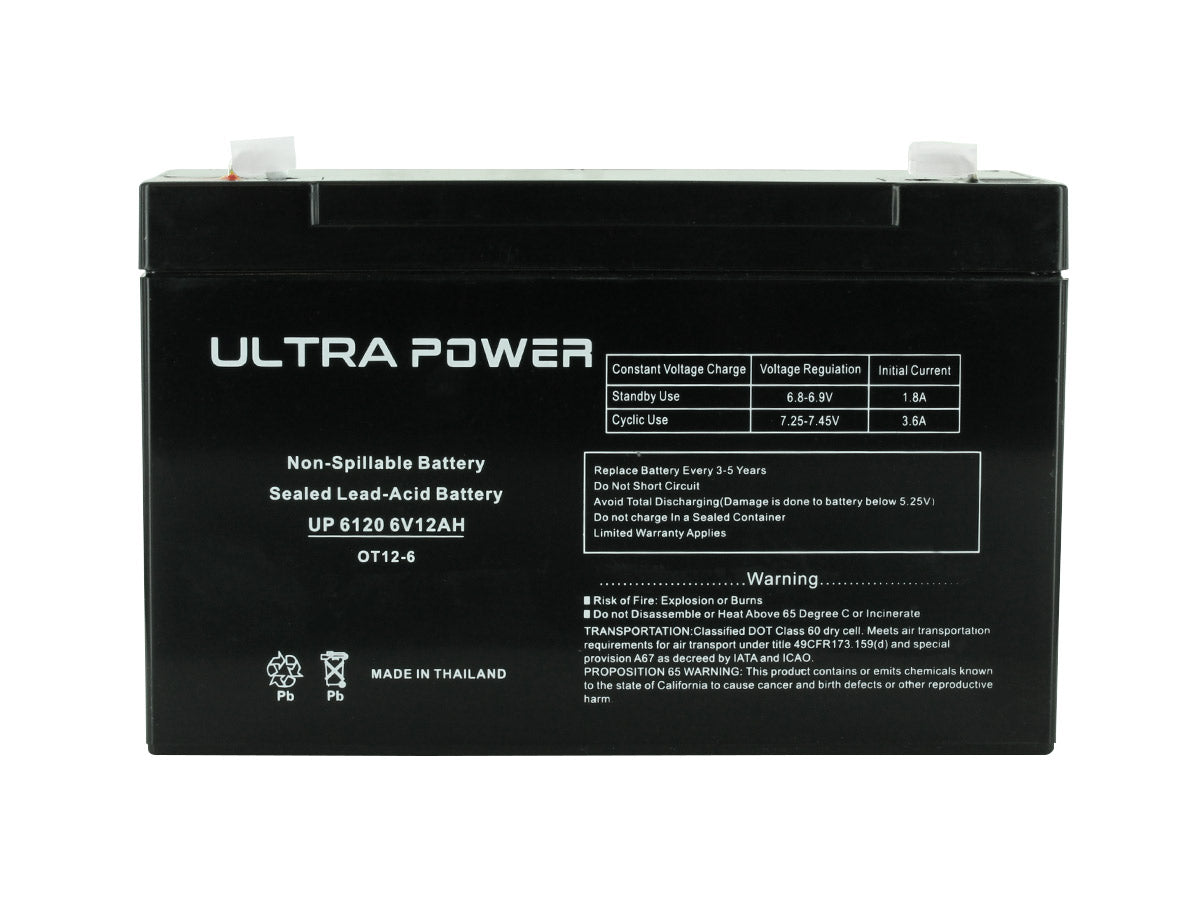 UltraPower UP6120F1 12Ah 6V Rechargeable Sealed Lead Acid (SLA) Battery - F1 Terminal