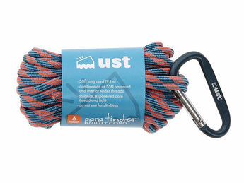The UST commitment to ultra-efficient survival tools continues with ParaTinder, a heavy duty braided cord design that provides a life-saving flammable fiber surrounded by durable multipurpose lines which keep you ready for anything. Just cut a ParaTinder cord and fray the ends to reveal the red fire-starting interior thread and 7 additional threads that can be removed and are widely applicable. Tough enough to be a fishing line and pull in a catch, ParaTinder's white thread lines are also perfect for repairing ripped fabrics or to sew sutures and stitches in an emergency.