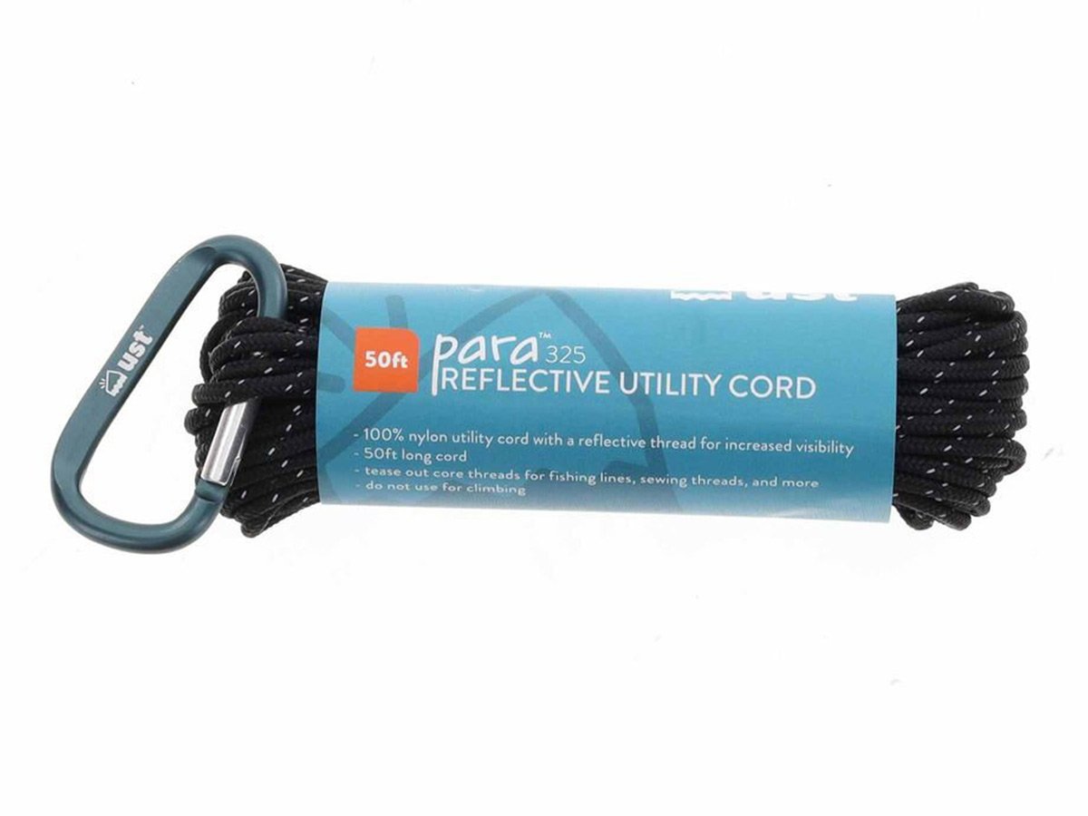 The UST Paracord 325 Hank is a 50-foot 325 utility cord ready for any and all camping or survival uses. It has a black reflective color design, to spot in the dead of night. Easily tease out core threads for reliable fishing lines, sewing thread, or first aid use. Use for fishing, tying your gear, setting up campsites, or creating zipper pulls!