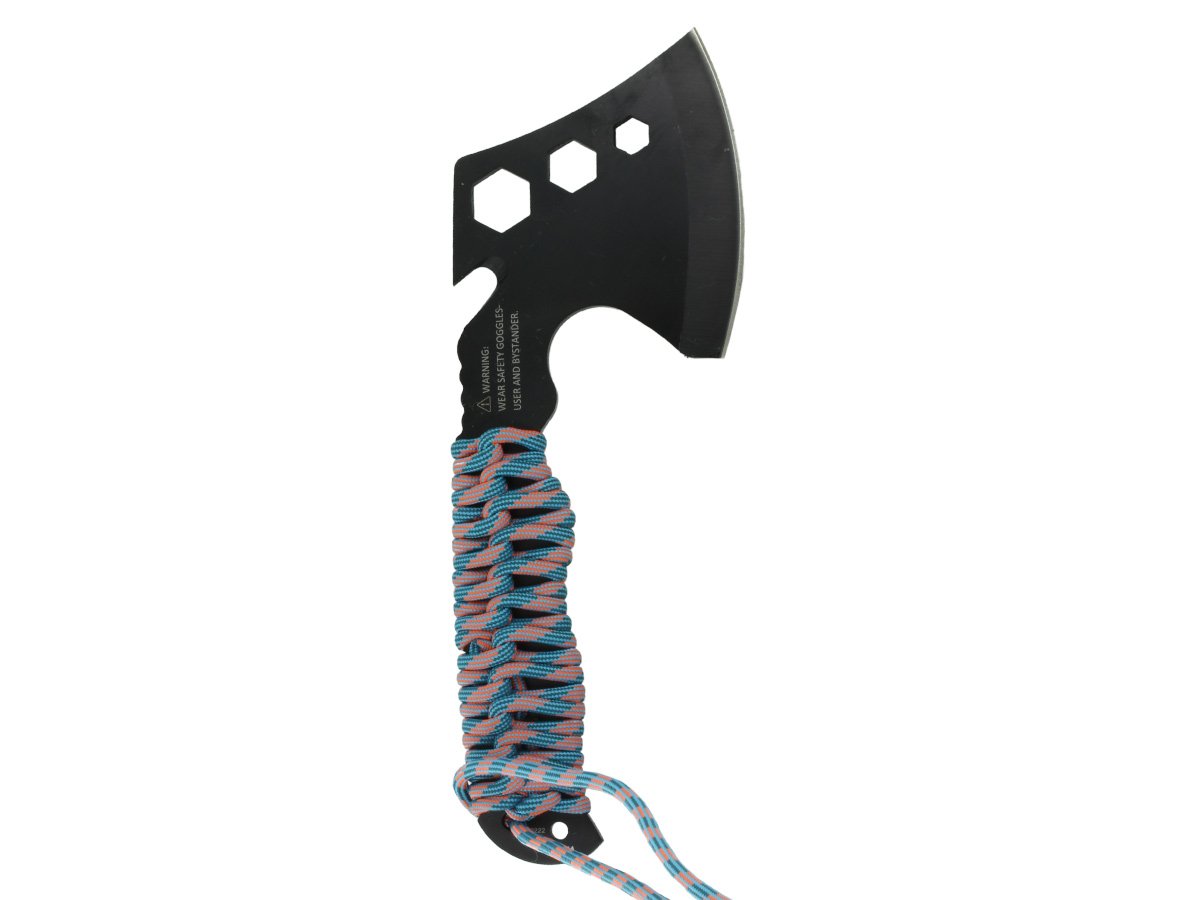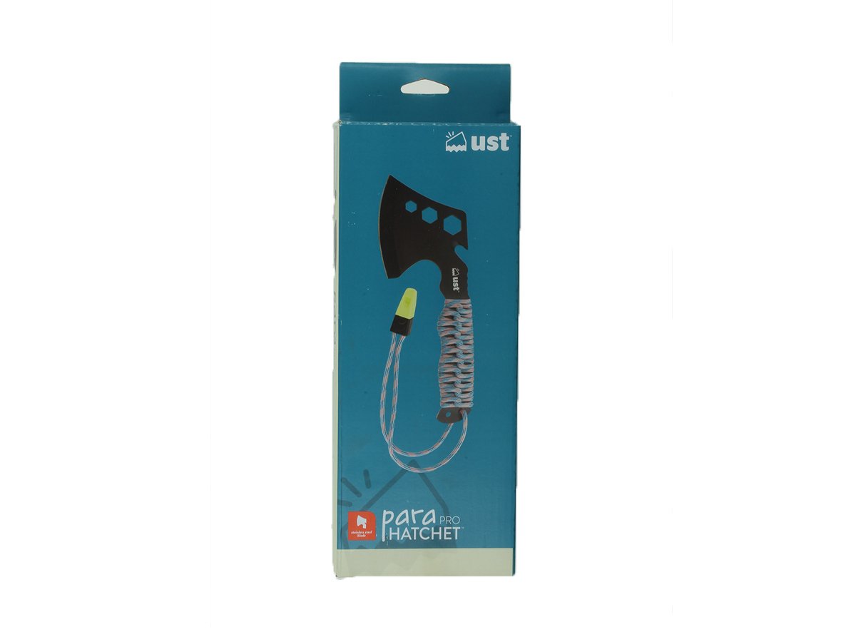The UST Parahatchet Pro is a versatile outdoors bladed tool that can meet all the demands of a survivalist thanks to its durable manufacturing and innovative multifaceted design. Stripping, cutting, and otherwise working with wood is a cinch with this fine-edged, broad stainless steel blade. Equipped with a unique sheath for storage and transport safety, as well as 8' of ParaTinder utility cord integrated as a secure handle wrap, which can be set alight with an included magnesium and flint fire starter. Attached at the end of the ParaTinder cord is an emergency survival whistle so you can signal for help outdoors. 3 hex wrench settings sized 3/8", 9/16", and 11/16" cut into the hatchet head significantly reduce weight and air resistance, giving you a more portable tool with a faster, cleaner cut.