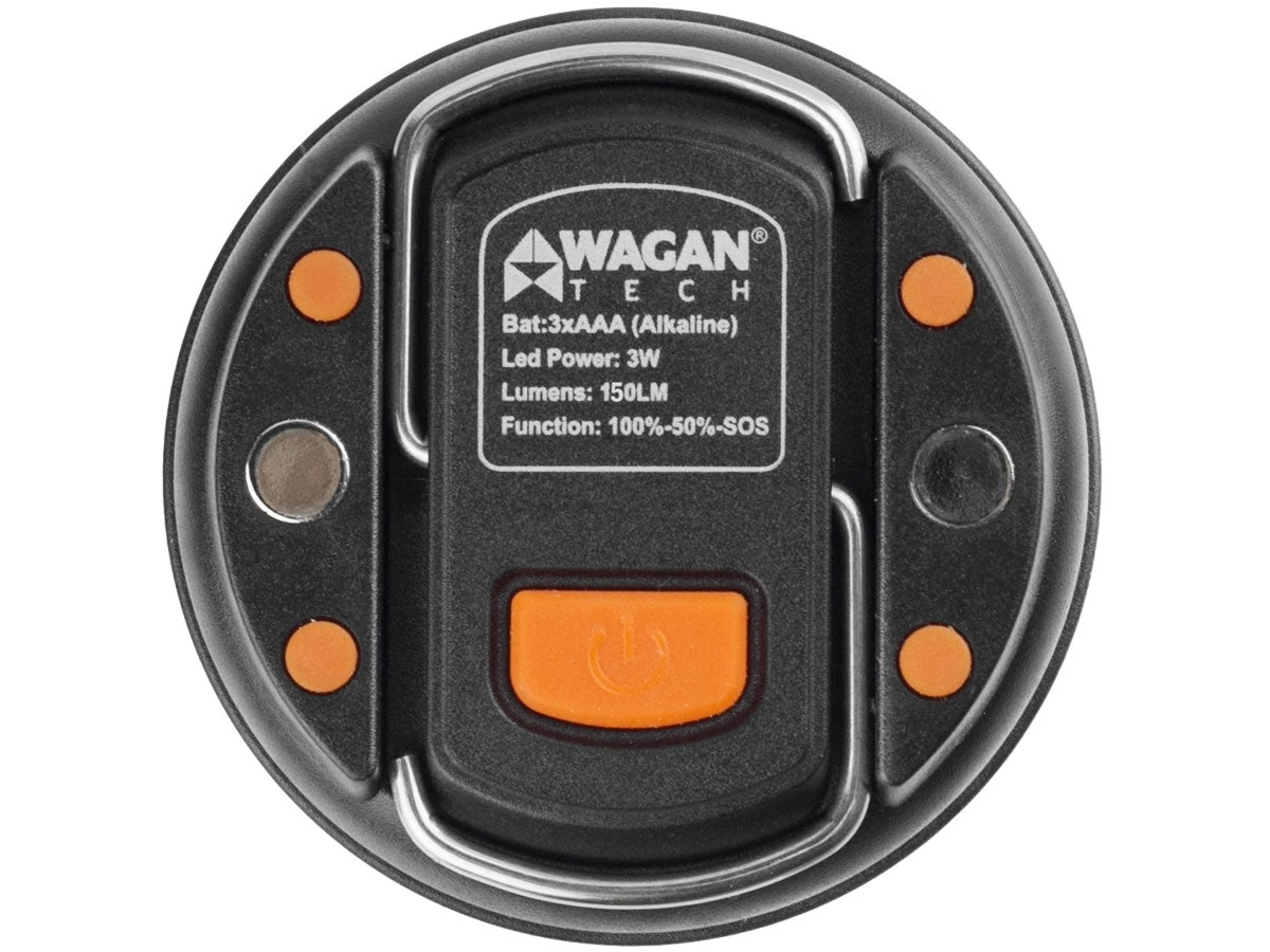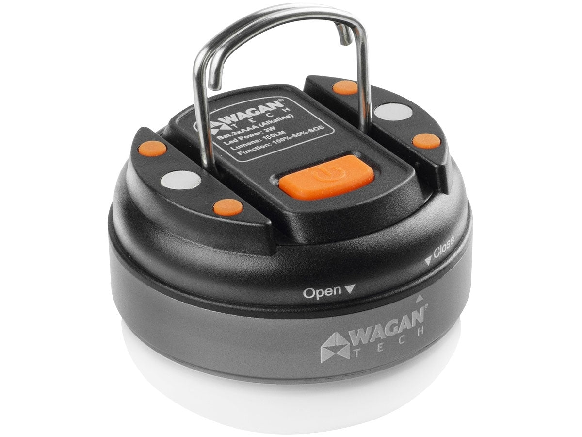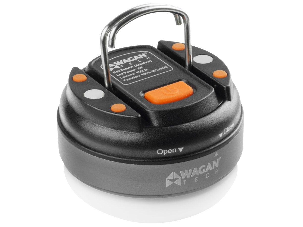 Compact and versatile, the Wagan Brite-Nite™ Dome Lantern is the ideal for your next camping trip or outdoor adventure. Measuring less than 3 inches across and weighing just over 3 ounces, this pint-sized light can be effortlessly carried along with your other gear while taking up minimal space. Powered by a trio of AAA batteries, this light is capable of producing up to 150 Lumens of diffused white light that can reach nearly 50 feet away, more than enough brightness to illuminate your campsite. In addition to its high output, the Brite-Nite™ also comes with a dimmer 60 Lumen setting for closer spaces, as well as a special S.O.S. setting that can run for up to 24 hours in emergency situations. The lantern's base comes with a pair of folding hooks for hanging, a pair of powerful magnets for mounting on a metal surface, and even rubber feet to prevent slipping on a flat surface.