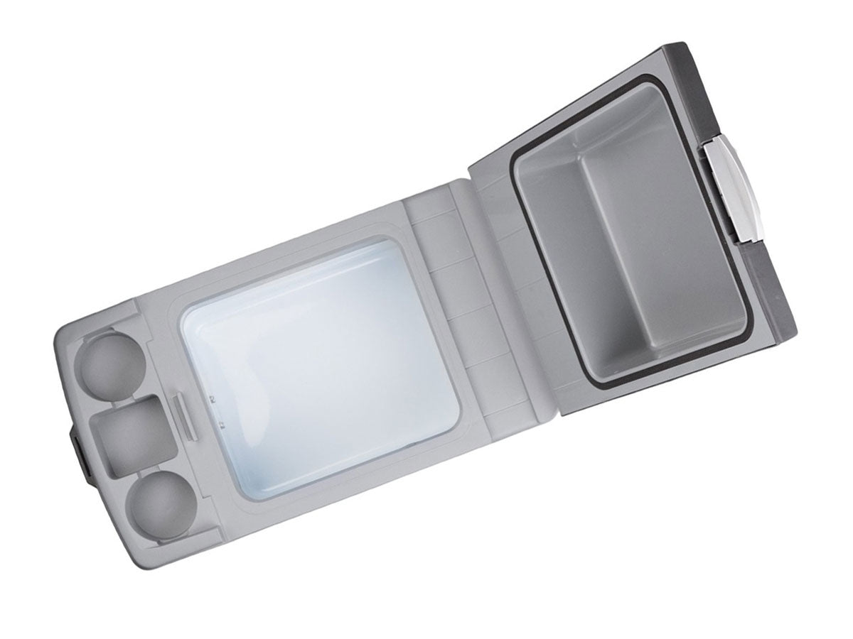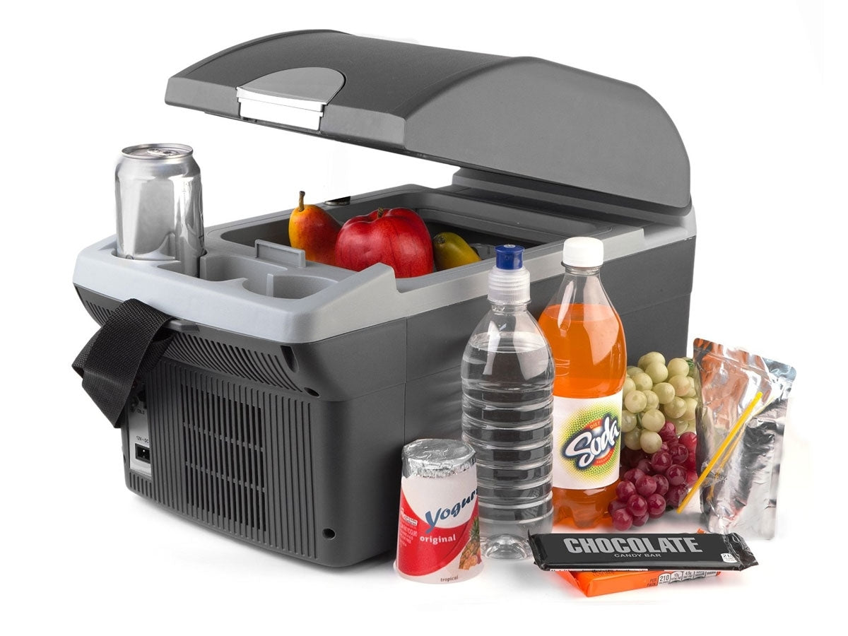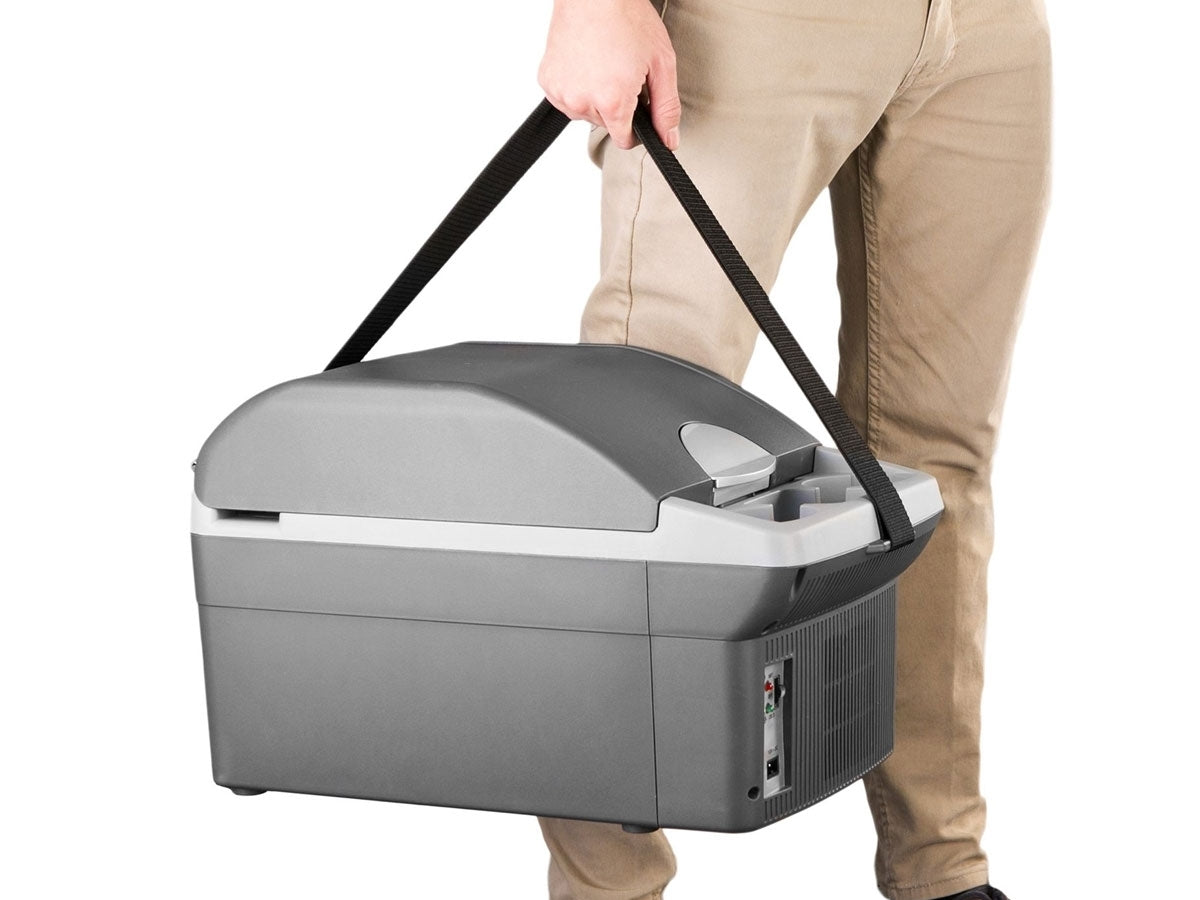 The Wagan 14 Liter fridge/warmer is perfect for long road trips and for people who drive frequently. It lets drivers save time and money by taking food and beverages on the go inside their vehicles. It also reduces and eliminates stops at fast food restaurants during road trips, which saves gas and keeps you moving along. The portable Wagan fridge/warmer keeps your food and beverages cold without the mess of using ice. It can hold up to 12 soda cans and contains 2 cup holders in the front. The Wagan fridge/warmer has a cooling capacity of 36°F (20°C) and a maximum warming of 140°F (60°C). Using your cooler is as easy as plugging it into your vehicle's 12V DC outlet and sliding the temperature control switch. It also comes with a 9 foot DC power cord that allows you to use it in the back seat. The adjustable shoulder strap is great for portability and taking it with you wherever you go. The Wagan 14 Liter fridge/warmer really comes in handy and is ideal for your long road trips and travels.