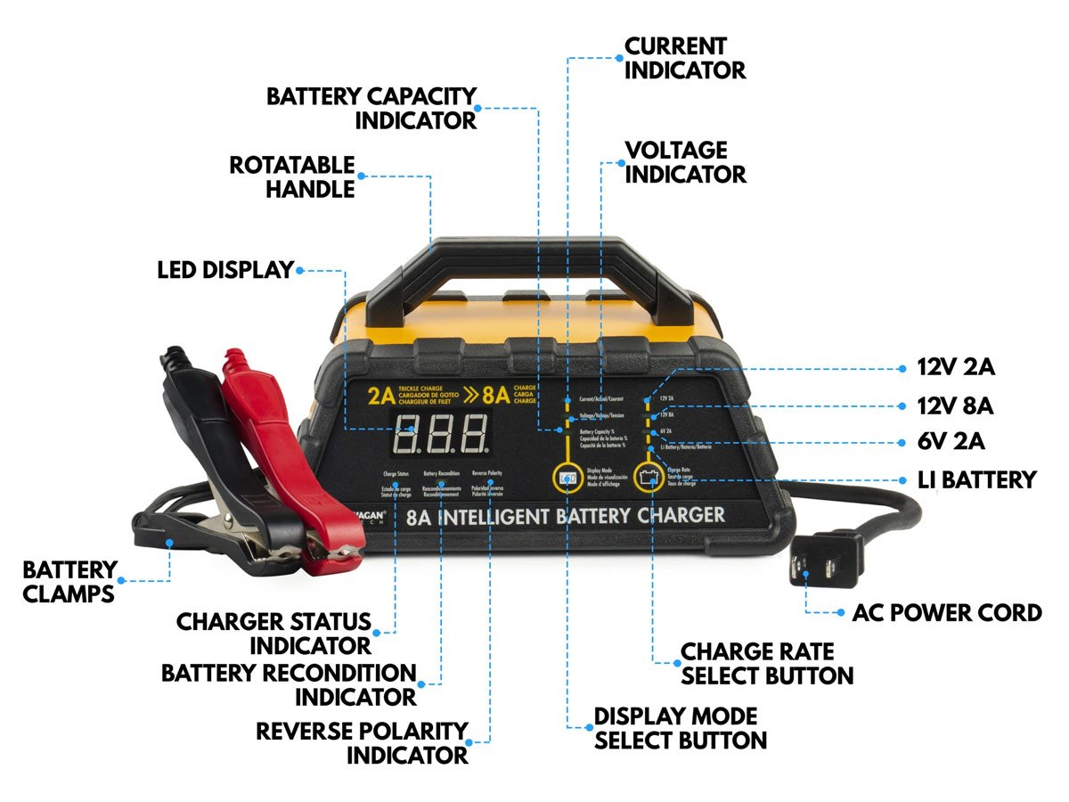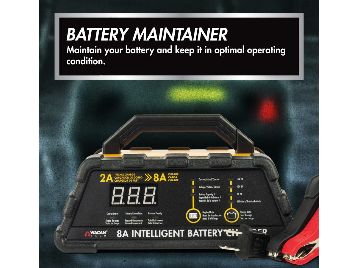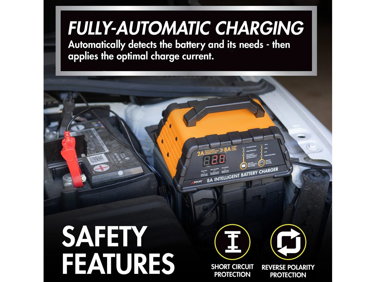 The Wagan 8A Intelligent Battery Charger is a compact, fully automatic battery charger that can be used in a variety of vehicles and types of batteries. With intelligent internal circuitry, this charger automatically detects battery type, charge, condition, and size. Never worry about over-charging or damaging a battery again.