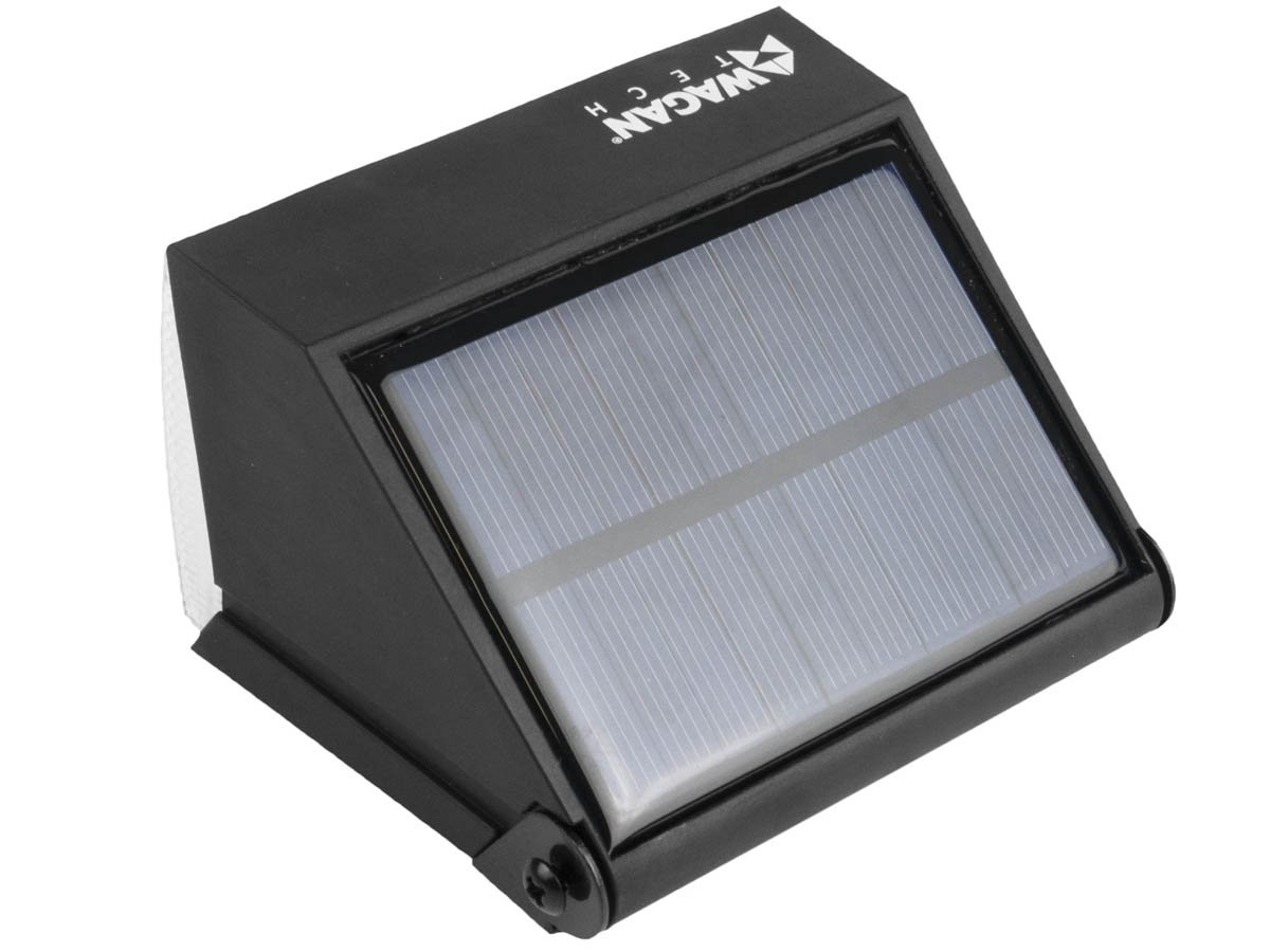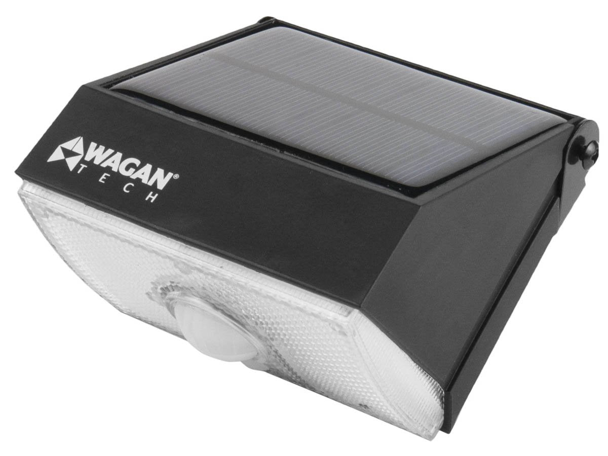 The Wagan 8570 Solar Wall Light is a mountable outdoor flood light with an internal battery, powered by a integrated solar panel. This motion-sensor light offers multiple brightness levels and operation modes, including a brief 10-second 1,000 lumen flash when triggered, a 20 lumen constant illumination, or both of these modes together.
