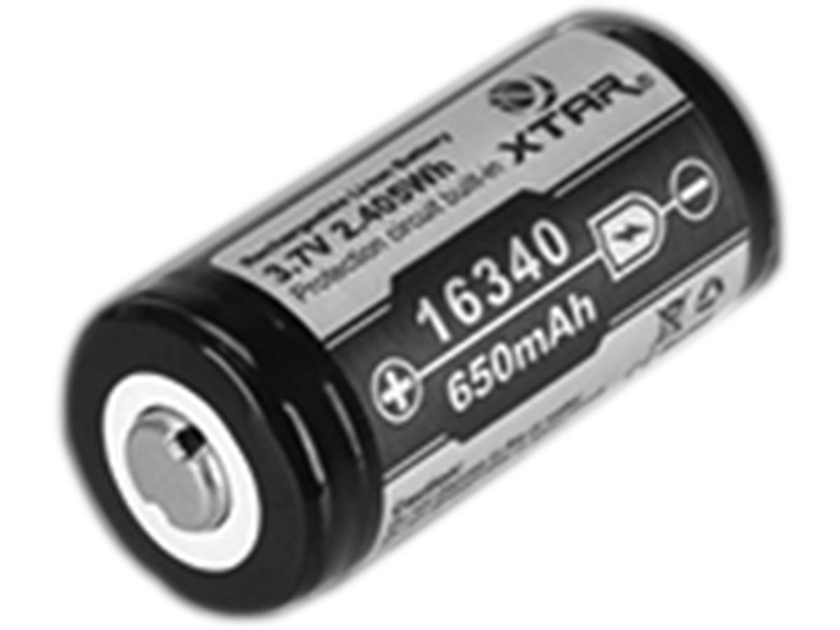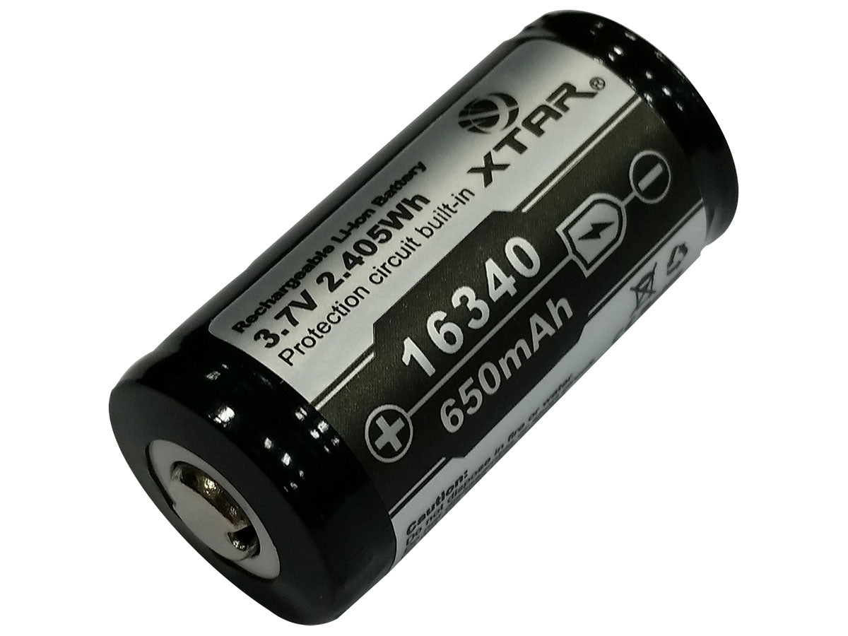 XTAR has recently upgraded their 16340 battery from a 600mAh to a 650mAh capacity. The lithium-ion cell is ideally meant for use with high-end LED flashlights and other portable electronics, including laser pointers. A built-in over-charge and over-discharge protection is included, which makes it both safe and reliable. This 16340 button top battery gives users an affordable and long-lasting alternative to primary CR123A cells.