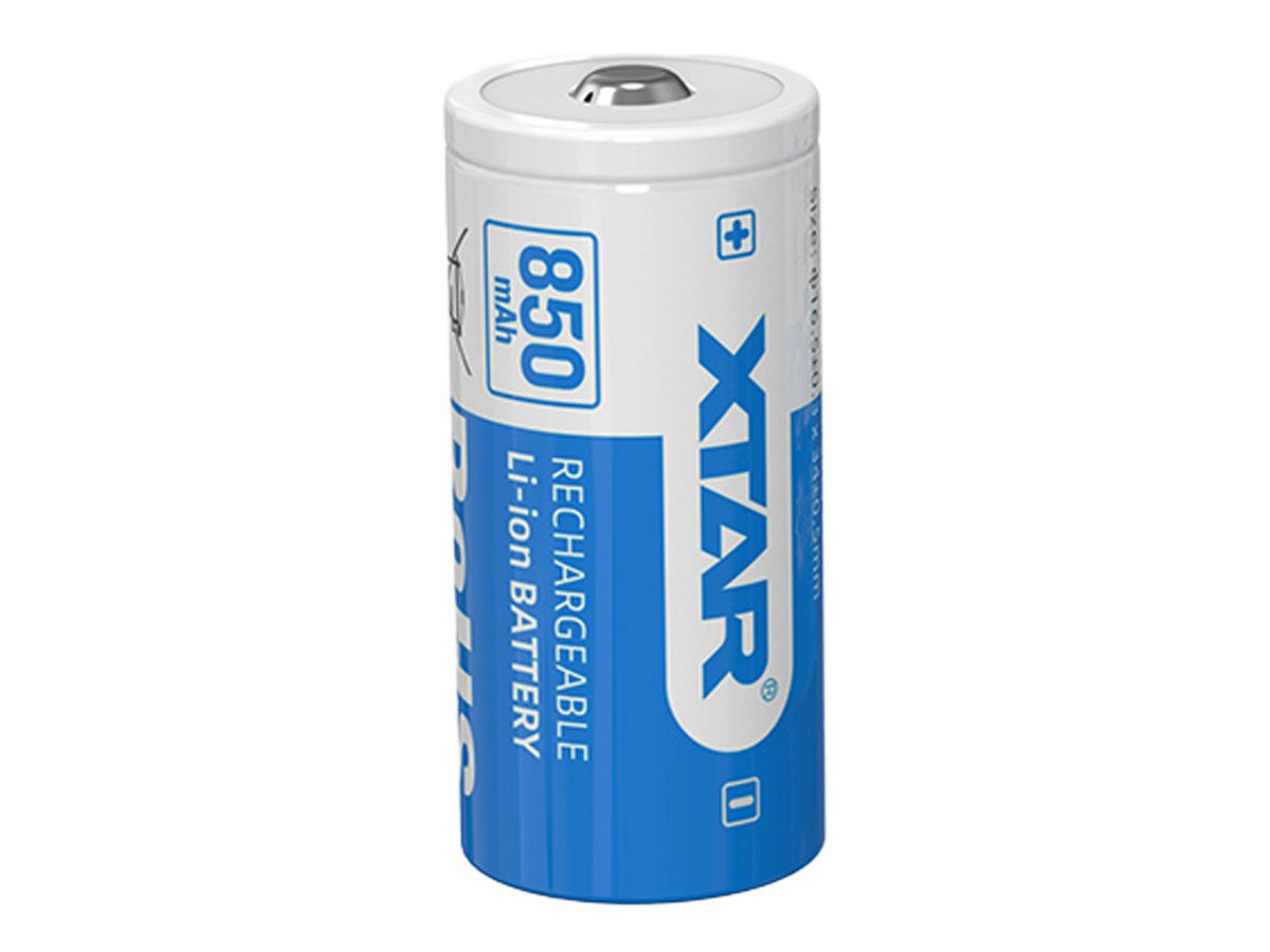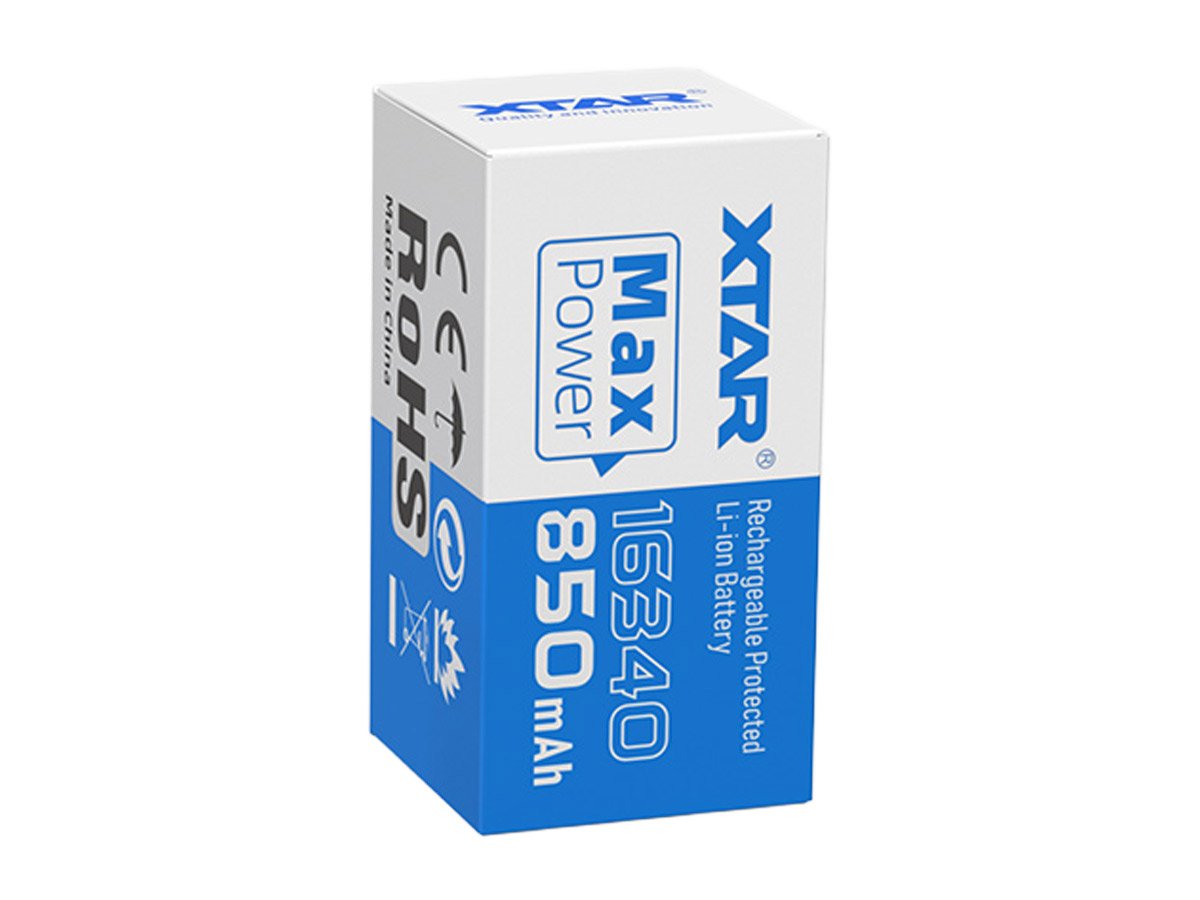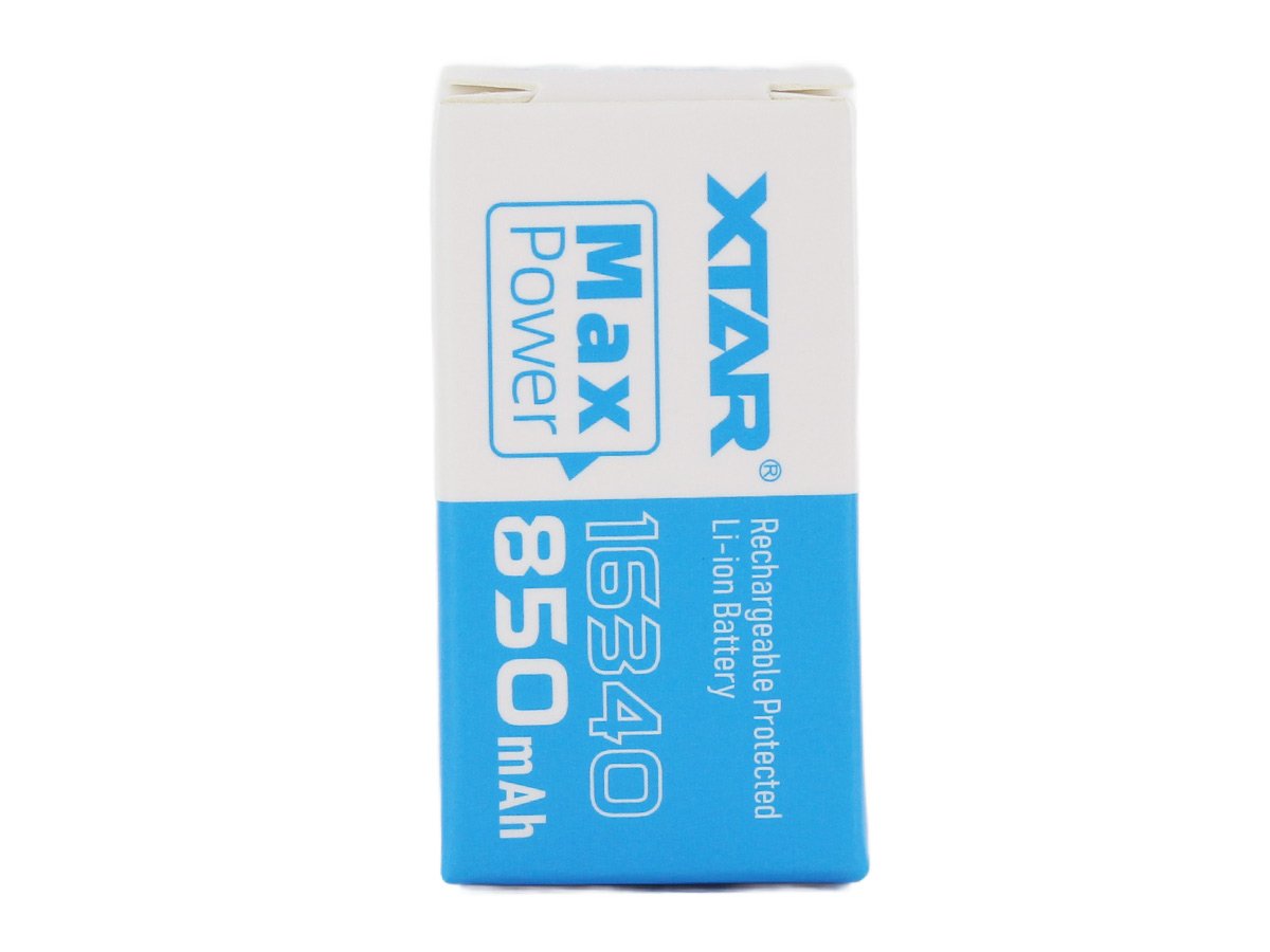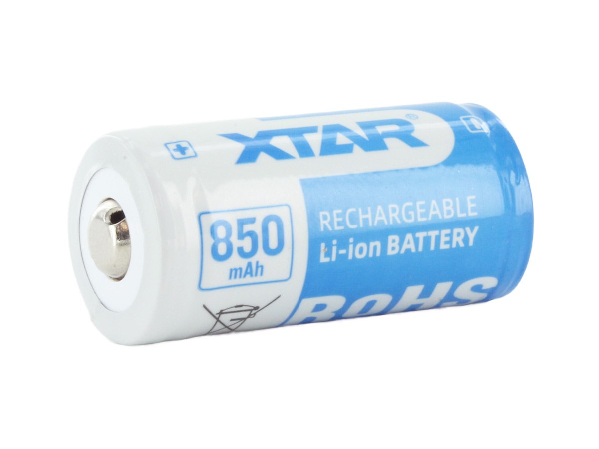 XTAR RCR123A / 16340 850mAh 3.6V Protected Lithium Ion (Li-ion) Button Top Battery - Boxed