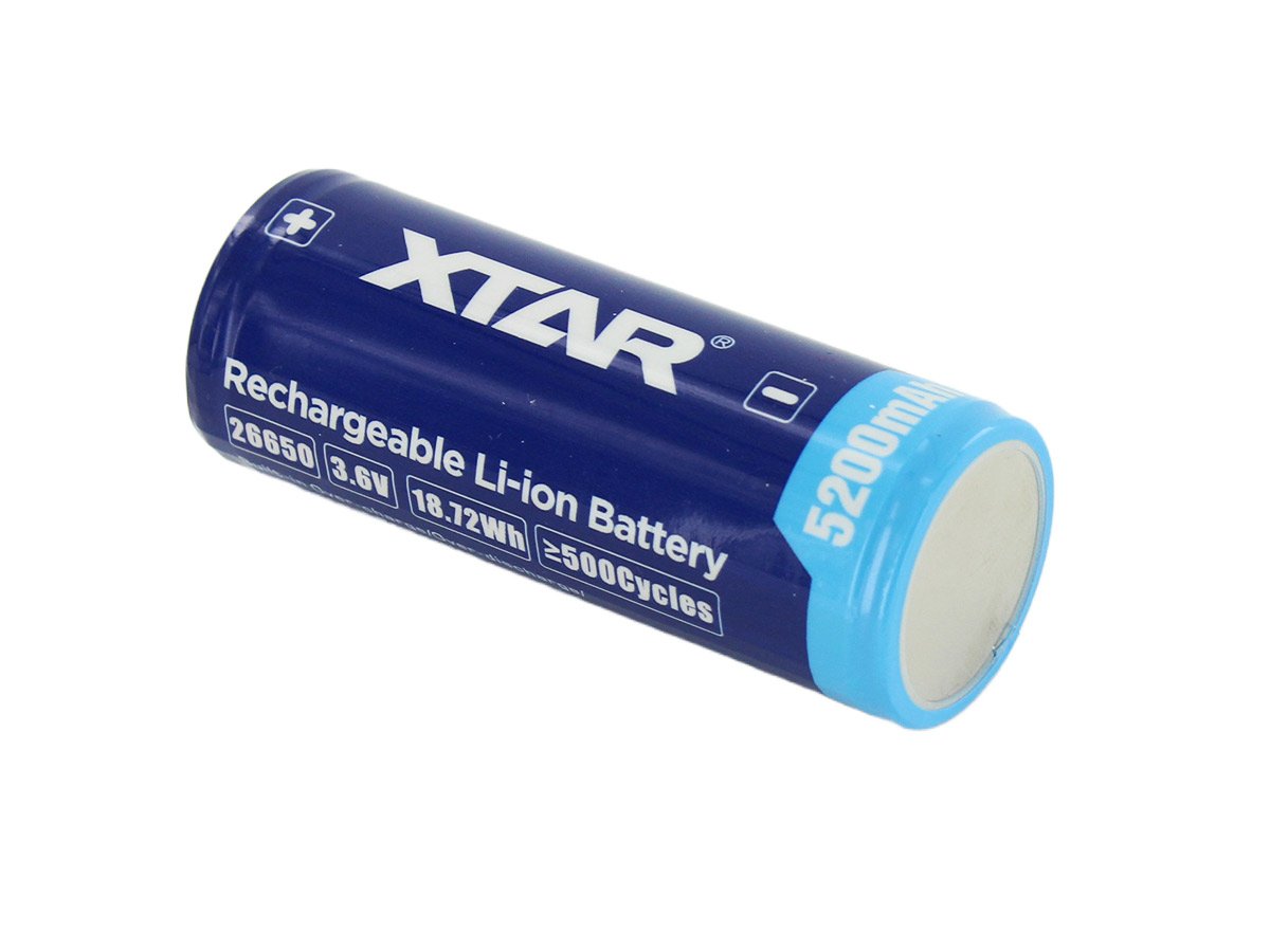 The XTAR 26650 is a powerful, high-capacity Li-ion battery made for heavy use in specialty electronics. This battery feature a 5200mAh capacity, outclassing competing batteries and keeping your devices powered up for extended periods of time. With 3.6 volt output the XTAR 26650 is the ideal battery for various electronics, but especially high-output LED flashlights. The powerful chemistry of these Li-ion batteries is regulated with a high tech protection circuit that prevents them form being over charged or over discharged. With a lifespan of up to 500 charge cycles, the XTAR 26650 will also save you money in the long run thanks to its high quality engineering.