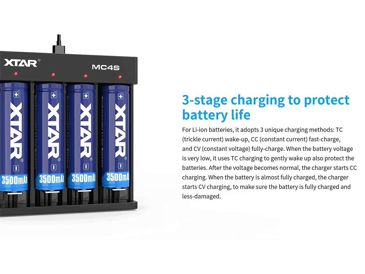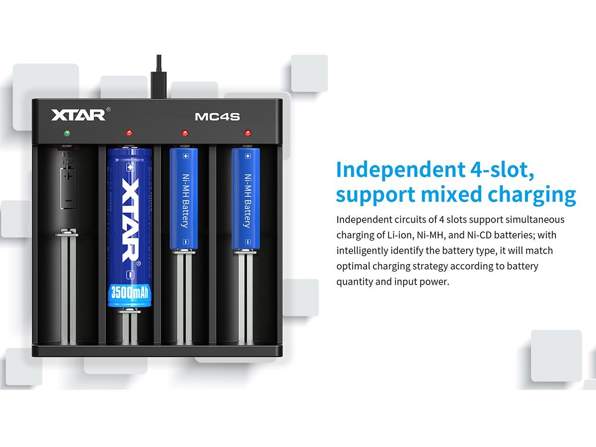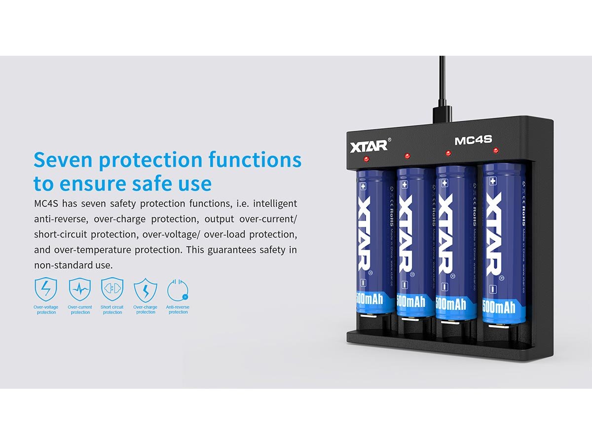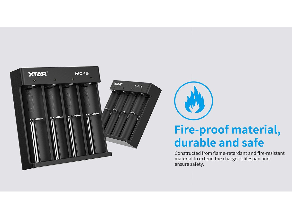 The XTAR MC4S is constructed from flame-retardant material and automatically identifies broken batteries by displaying an error before initiating the charging process.