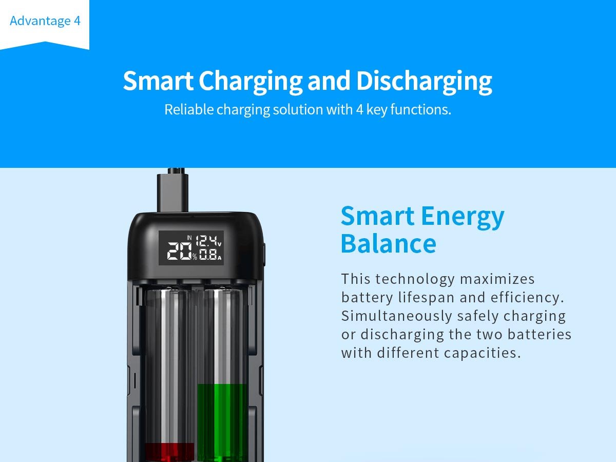 • » Designed to charge 18650, 18700, 20700, and 21700 batteries