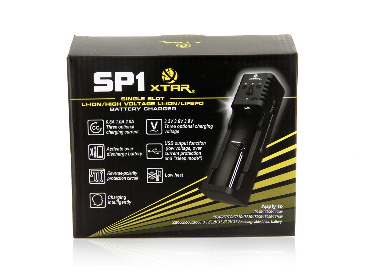 The SP1 from XTAR is one of the most unique and versatile battery chargers we have ever seen, and it's certainly something to get excited about. As a single-slot charger, it can only charge one battery at a time, perfect as a back-up (remember "One is None!") charger to keep in the car or when traveling as it provides the all the advantages of a small, highly portable charger.As with all XTAR chargers, safety is the number one priority. The SP1 casing is made from super tough ABS plastic that is fire-proof and ready for whatever you throw at it. Three optional charging circuits (0.5A, 1.0A, or 2.0A) allow for charging of 12 different kinds of lithium-ion battery (see below for the full list), so you can rely on the SP1 for whatever battery you need. The IC monitor will safely control the charging level and automatically terminate the current when the battery has reached capacity. Over-discharged batteries will be repaired and brought back to life thanks to the zero-volt activation feature which slowly trickles in current to the over-discharged battery. You'll get more life out of your lithium-ion batteries than you ever thought possible, and you won't have to worry about over-depletion. The spring loaded contacts eliminate the need for spaces when switching between different batteries; you won't have to deal with that headache any more.
