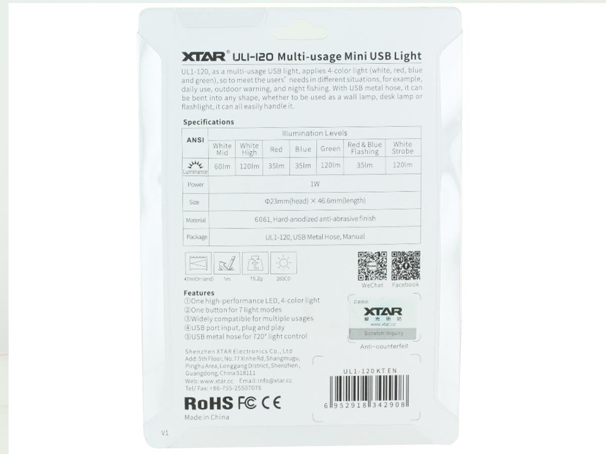 XTAR UL1-120 USB Powered Goose Neck LED Flashlight - 120 Lumens