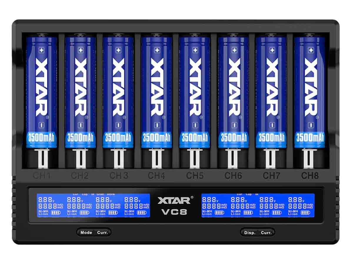 XTAR VC8 8-Channel Smart Charger with LCD Screen for Li-ion, NiMH and NiCd
