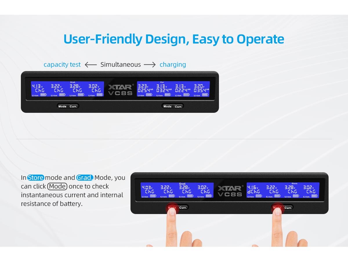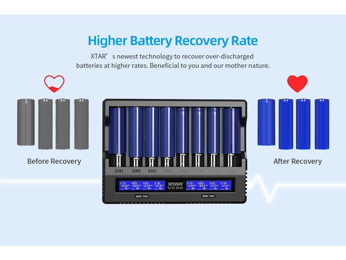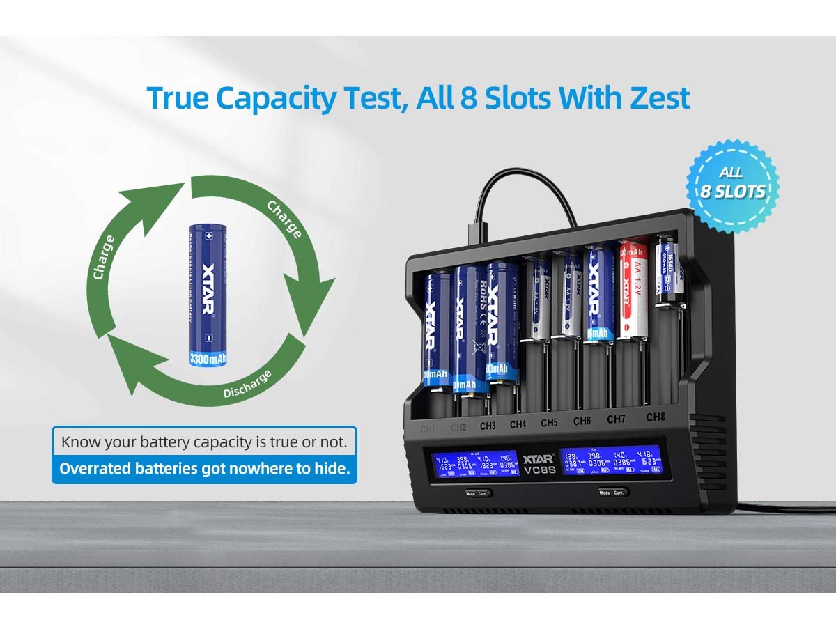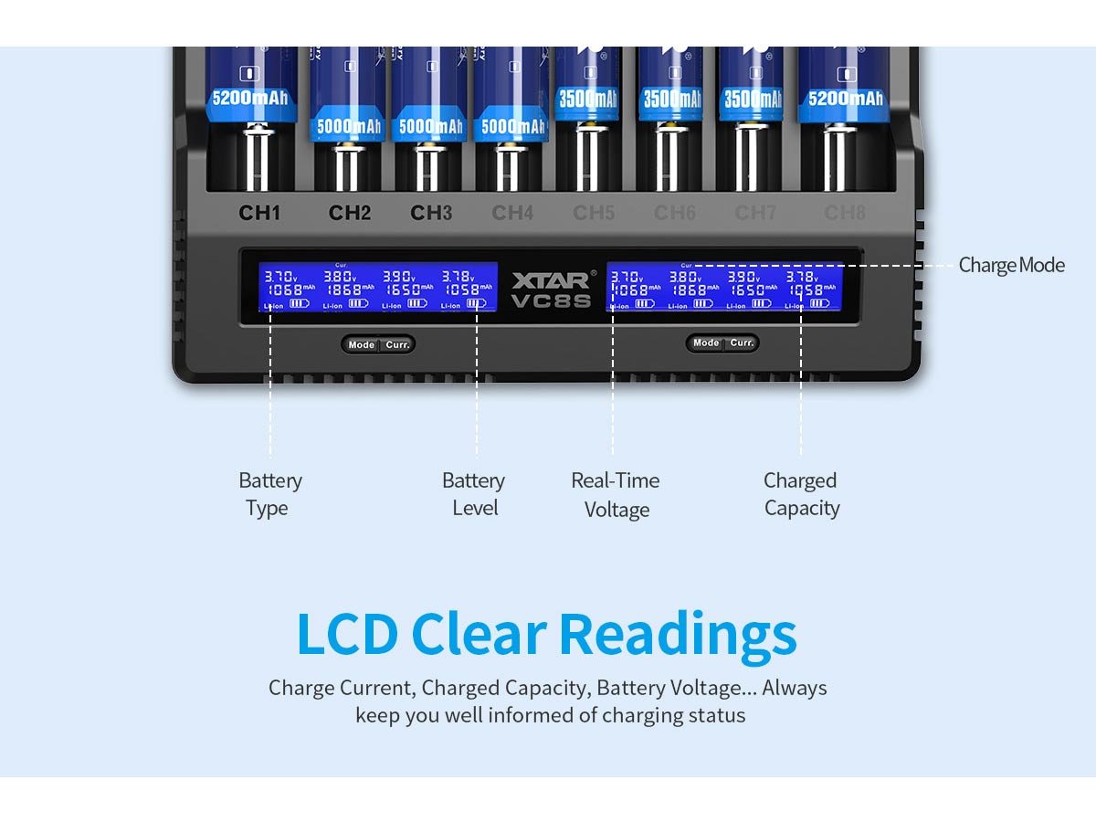 The XTAR VC8S Smart Charger is built with protections against short-circuit, anti-reverse, over-charge, over-current, and over-voltage conditions.- Notable Features