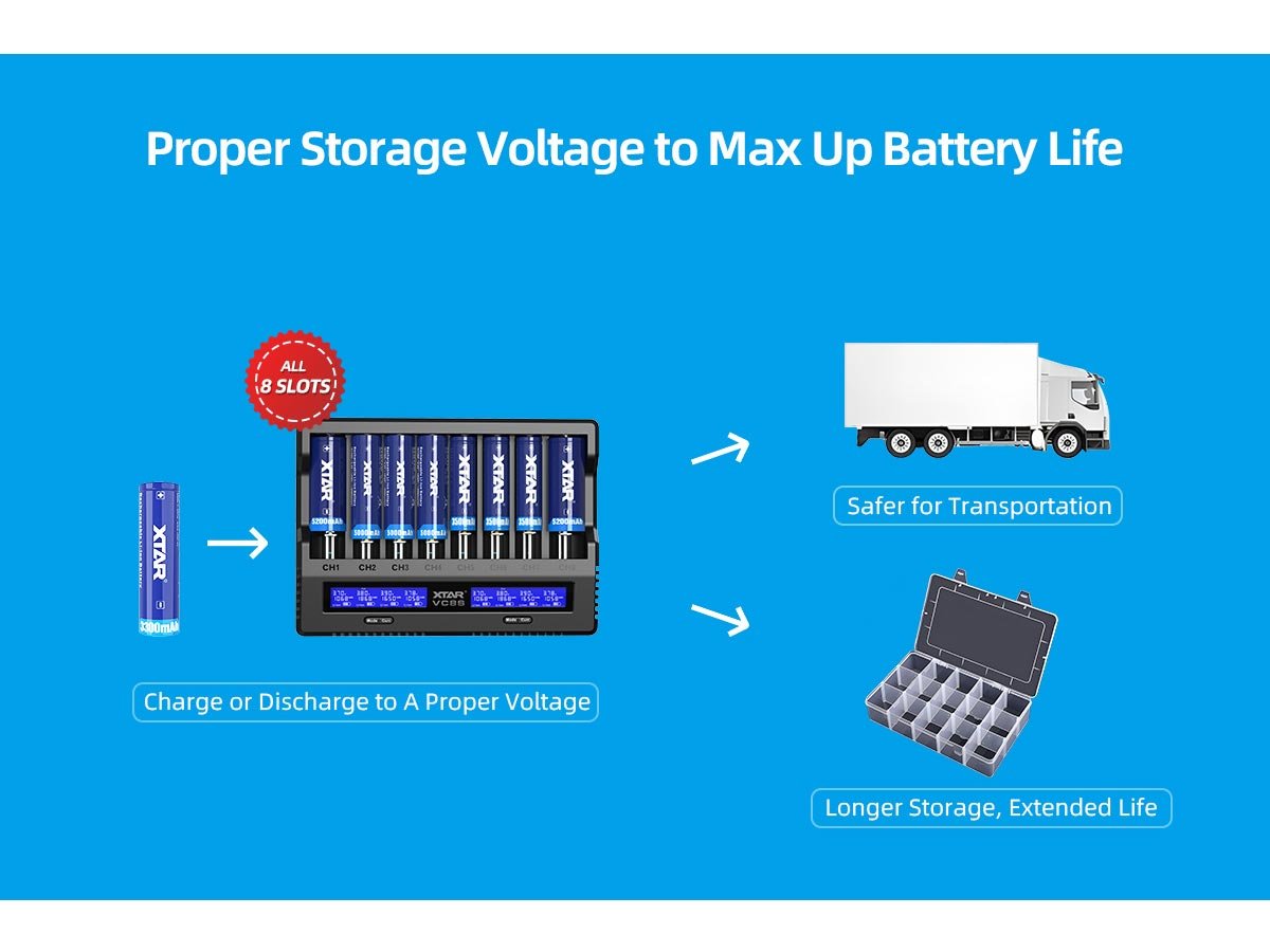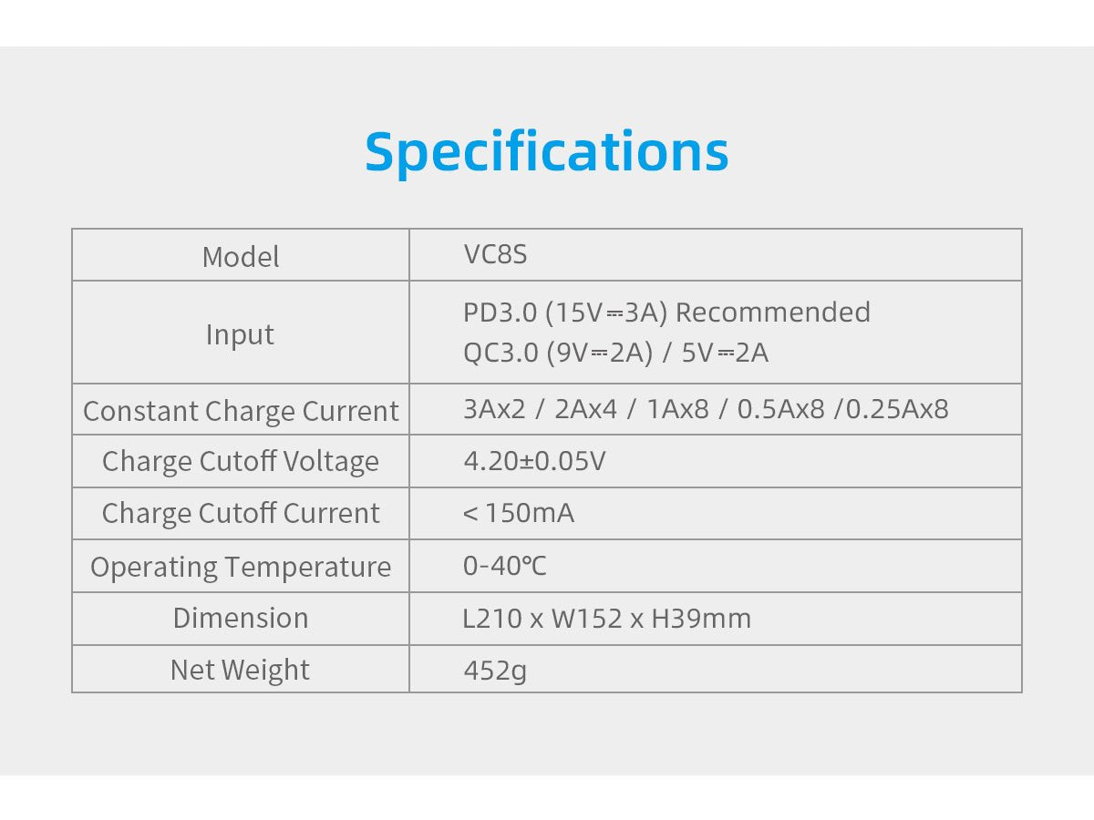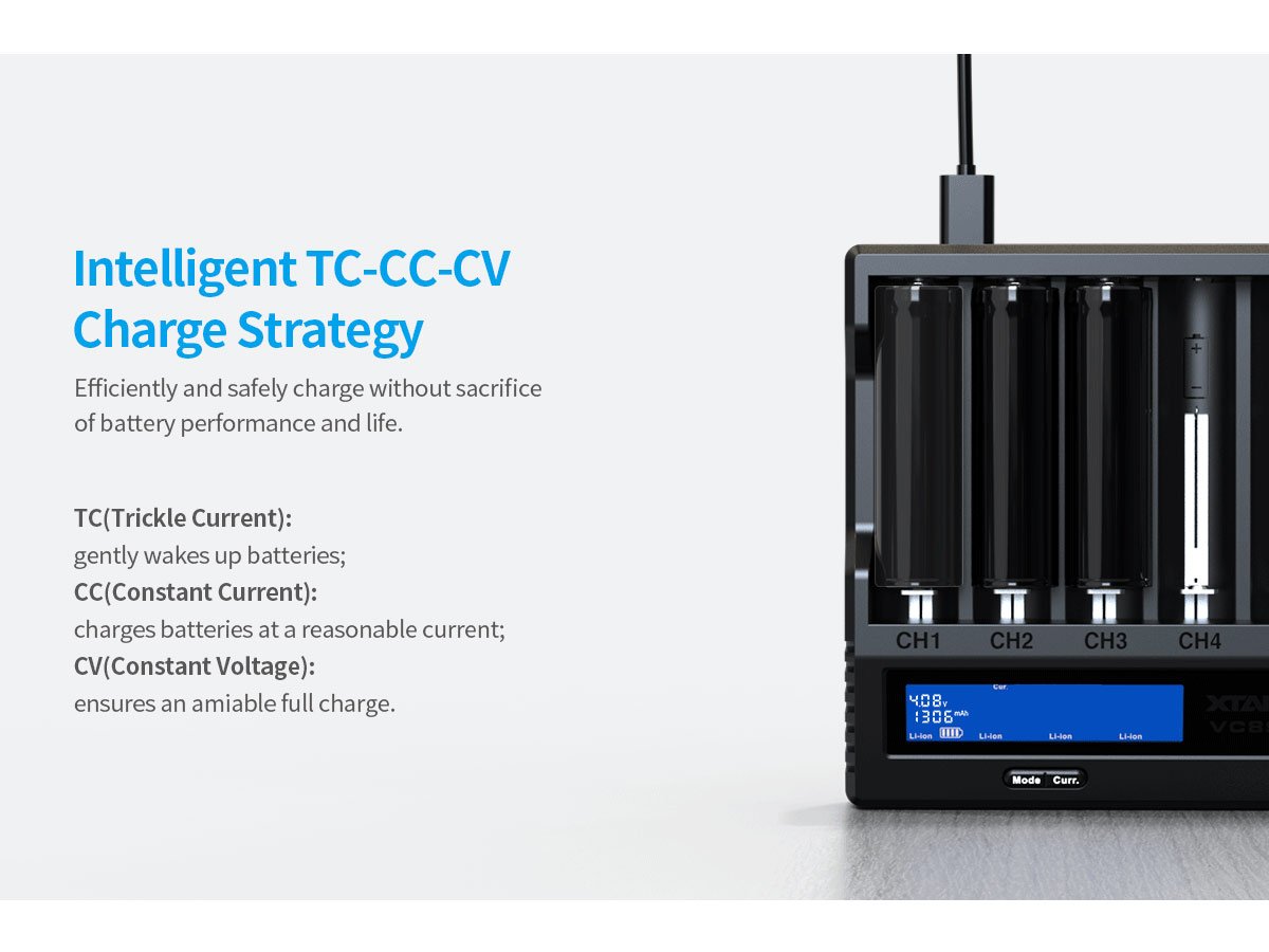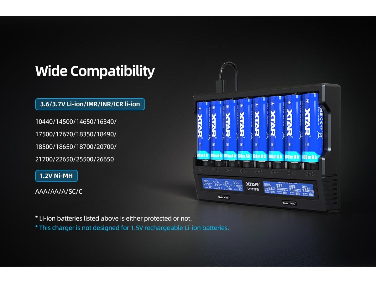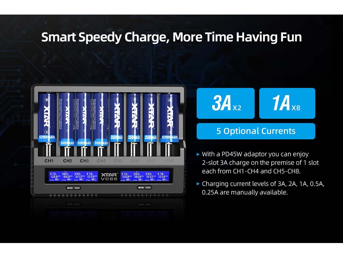 The XTAR VC8S Smart Charger is built with protections against short-circuit, anti-reverse, over-charge, over-current, and over-voltage conditions.- Notable Features