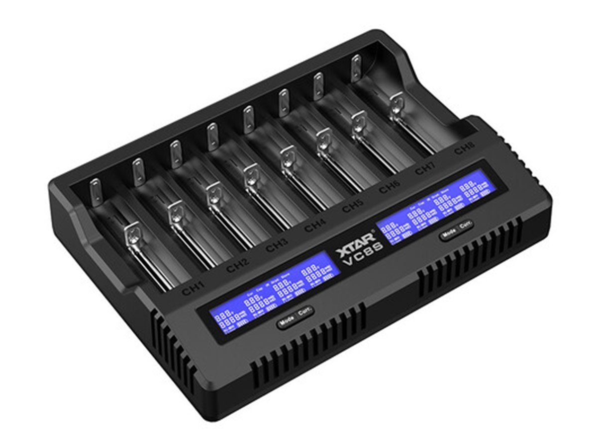 XTAR VC8S 8-Channel Smart Charger with LCD Screen for Li-ion NiMH and NiCd