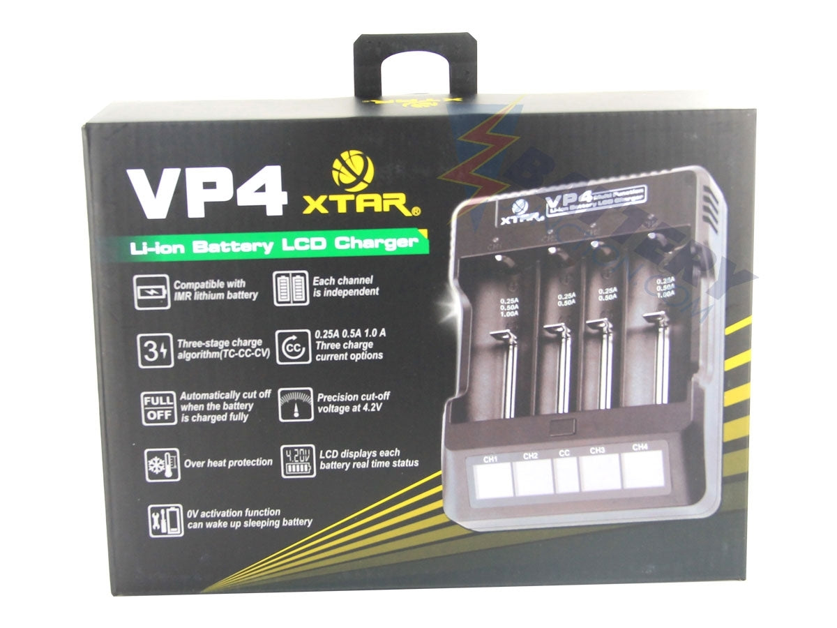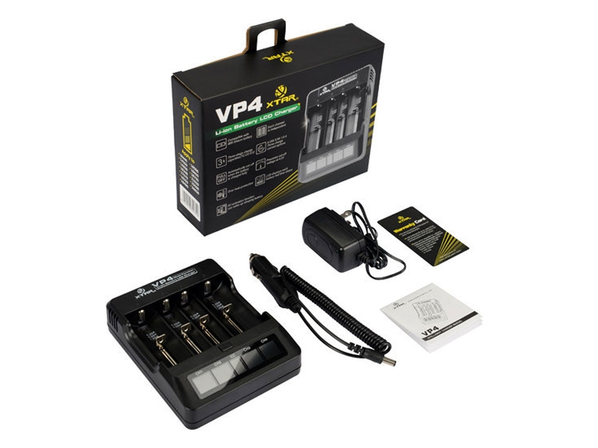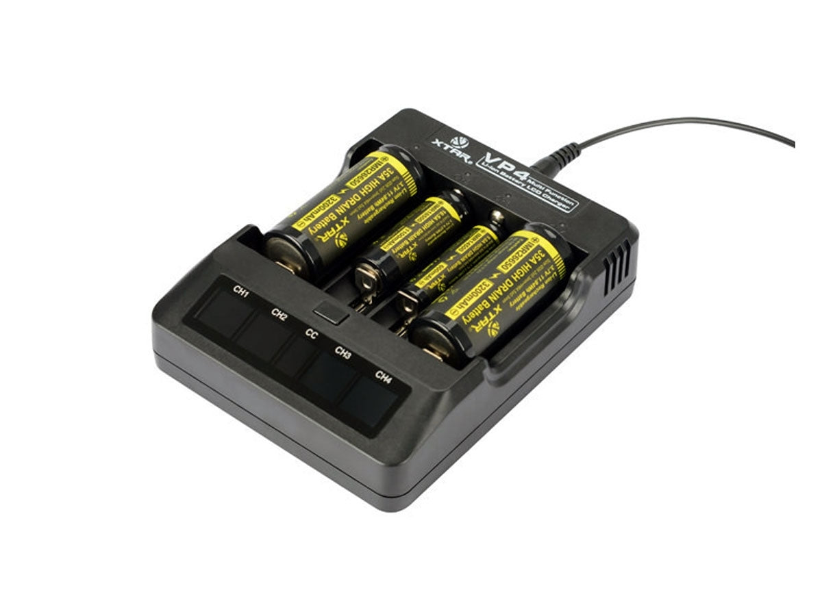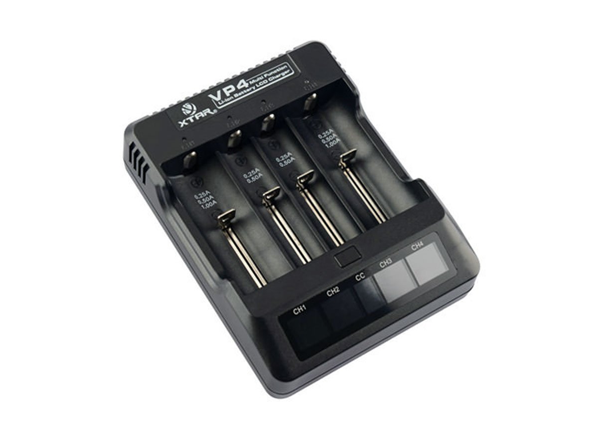 Introducing the VP4 Smart Battery Charger from XTAR, a 4-bay, 4-channel li-ion charger with a LCD display screen. Compatible with both IMR lithium batteries and small capacity batteries, the VP4 will adjust the charging current according to each different channel or you can manually choose the current with a button switch. The LCD display will output vital information, such as charge time, precision battery cut-off voltage, battery power indicators, and optional currents. All four channels are independent, so you can charge one battery at a time or a pair of batteries. You can charge a multitude of li-ion batteries ranging from 10440 cells all the way up to 26650 cells. Gone are the days of worrying about overcharging, over-discharging, shorting out the circuit, or reverse polarity, as the VP4 will protect your batteries and charger. Pick up an XTAR VP4 Smart Battery Charger today!Features:- LCD displays each battery real time status